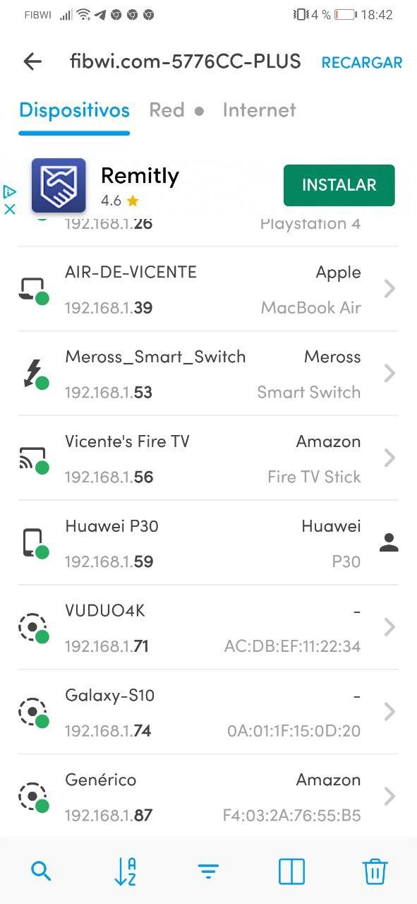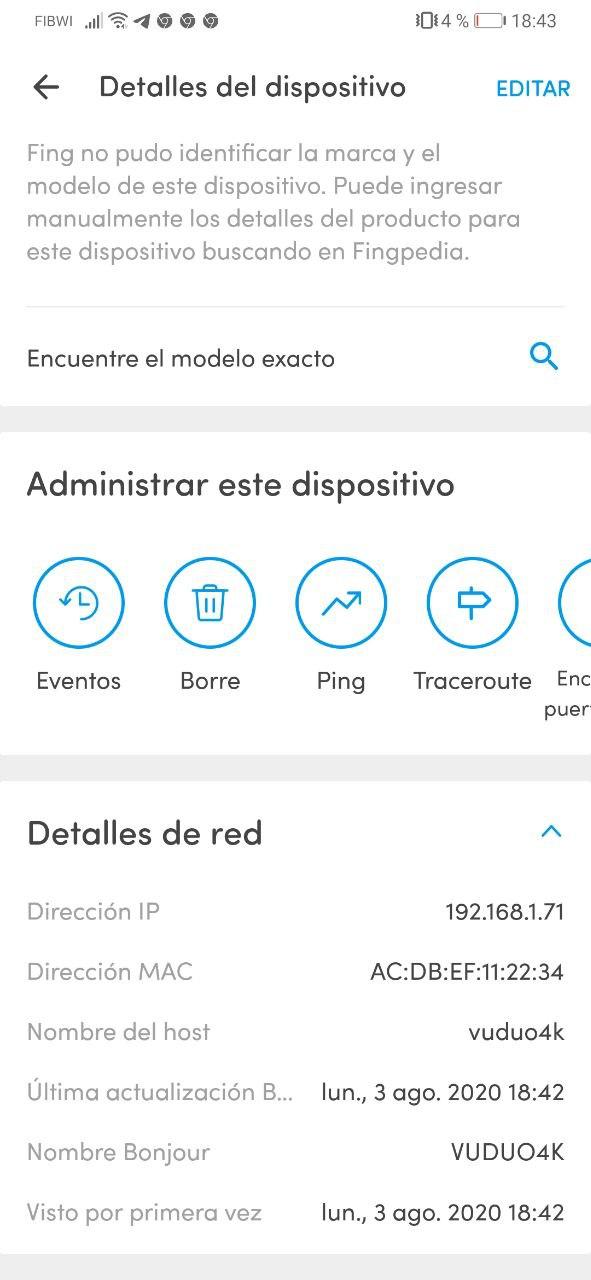 Estos datos aparecen en el menu de red de cada imagen, otra forma facil es usando la app gratuita para movil llamada fing, donde podemos escanear los dispositivos conectados a nuestra red y por lo tanto nuestro receptor, en este ejemplo: