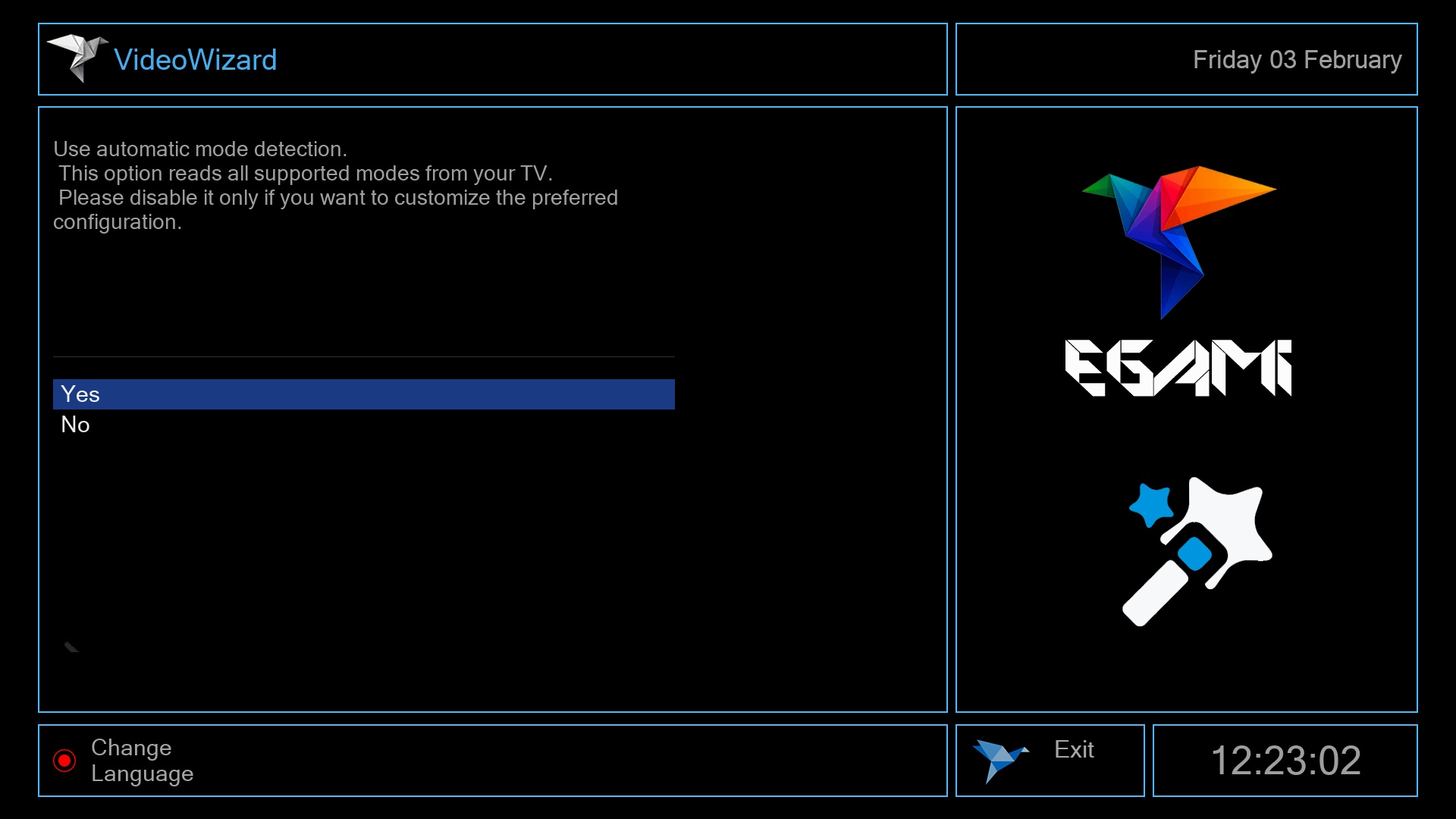 1. La primera configuración es para seleccionar la resolución de pantalla del receptor, nos solicitara si deseamos usar el modo automatico de deteccion: