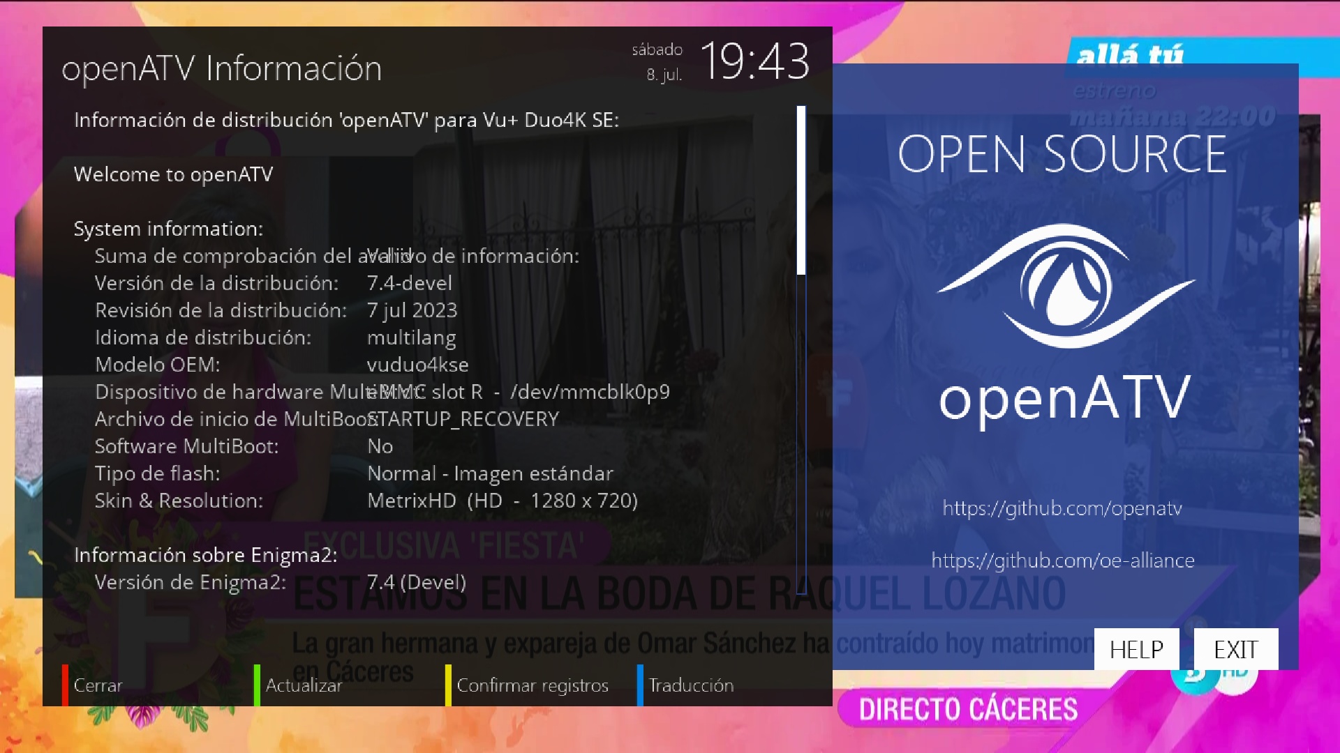 En esta primera interfaz podemos pulsar boton rojo para cambiar el idioma del osd