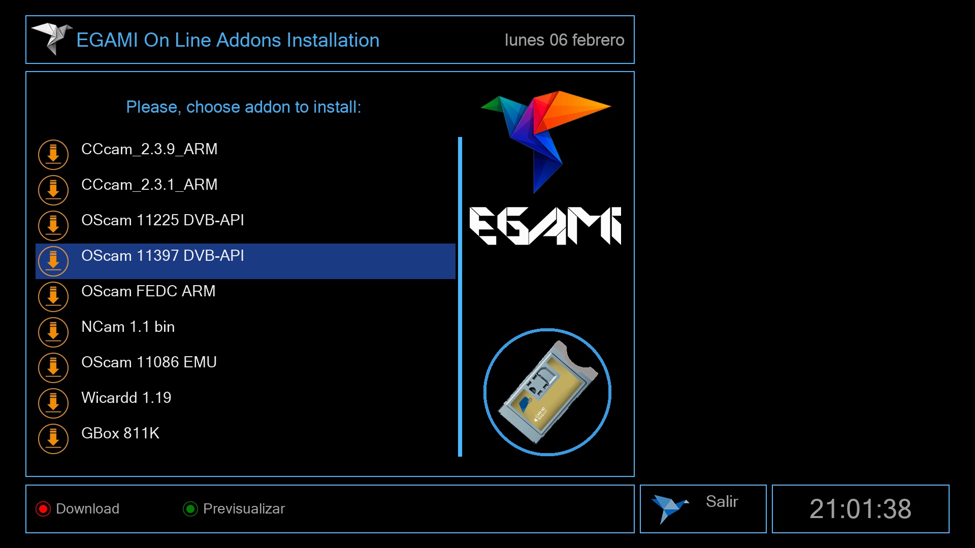 La imagen EGAMI desde sus repositorios nos proporciona varias softcam para su instalacion, para ello lo podemos realizar de una forma facil.