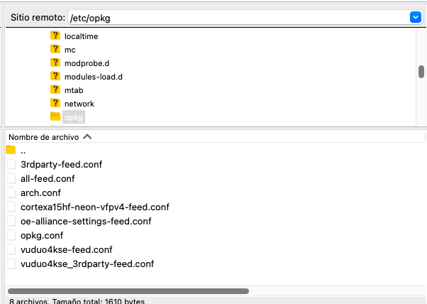 Y luego lo introducimos nosotros mismos con winscp en el directorio /etc/opkg