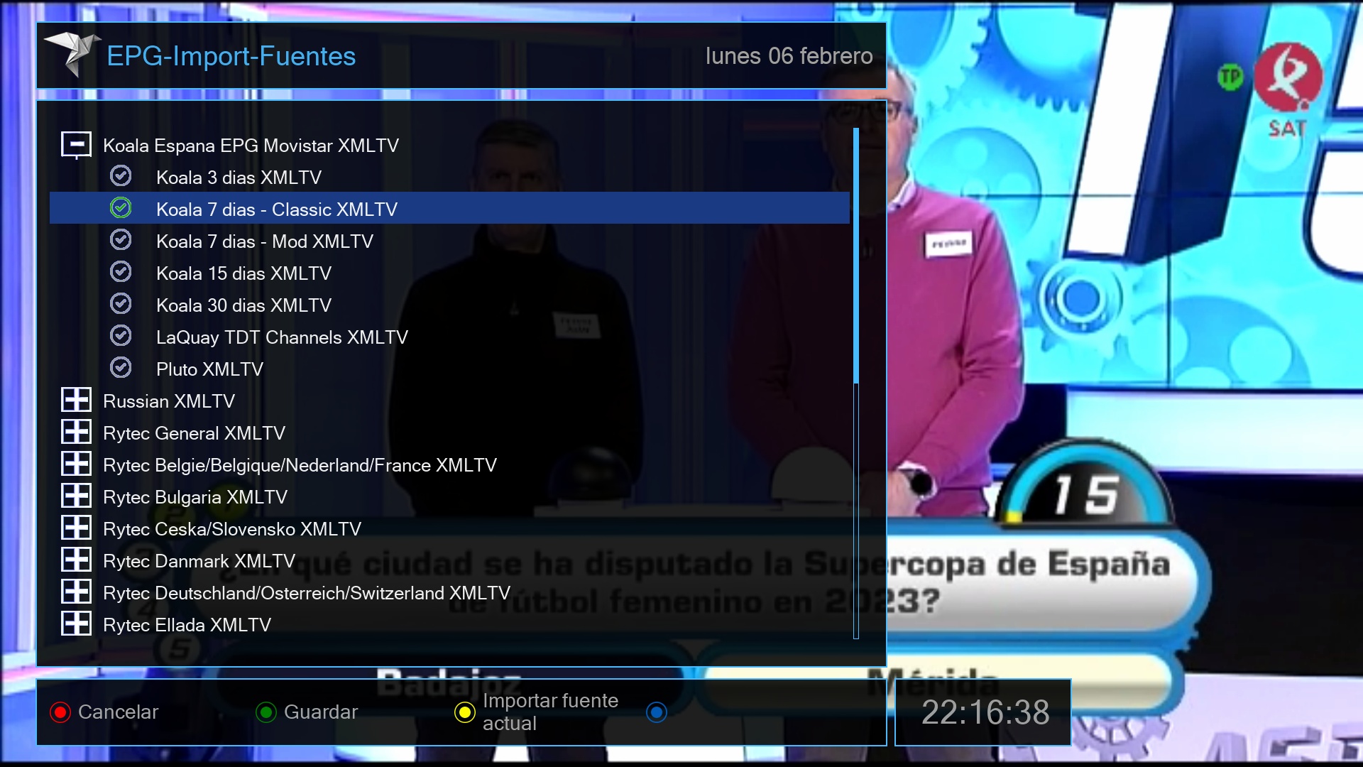 pulsamos boton azul para seleccionar fuentes, Seleccionamos koala españa movistar y marcamos los dias que deseamos tener