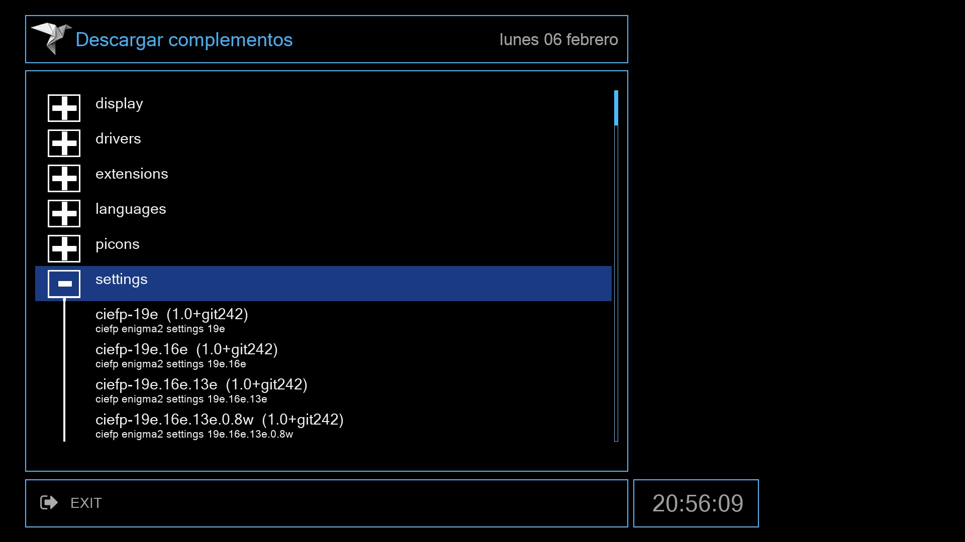 11. Termina el proceso del wizard inicial y ya podemos acceder a las opciones del receptor