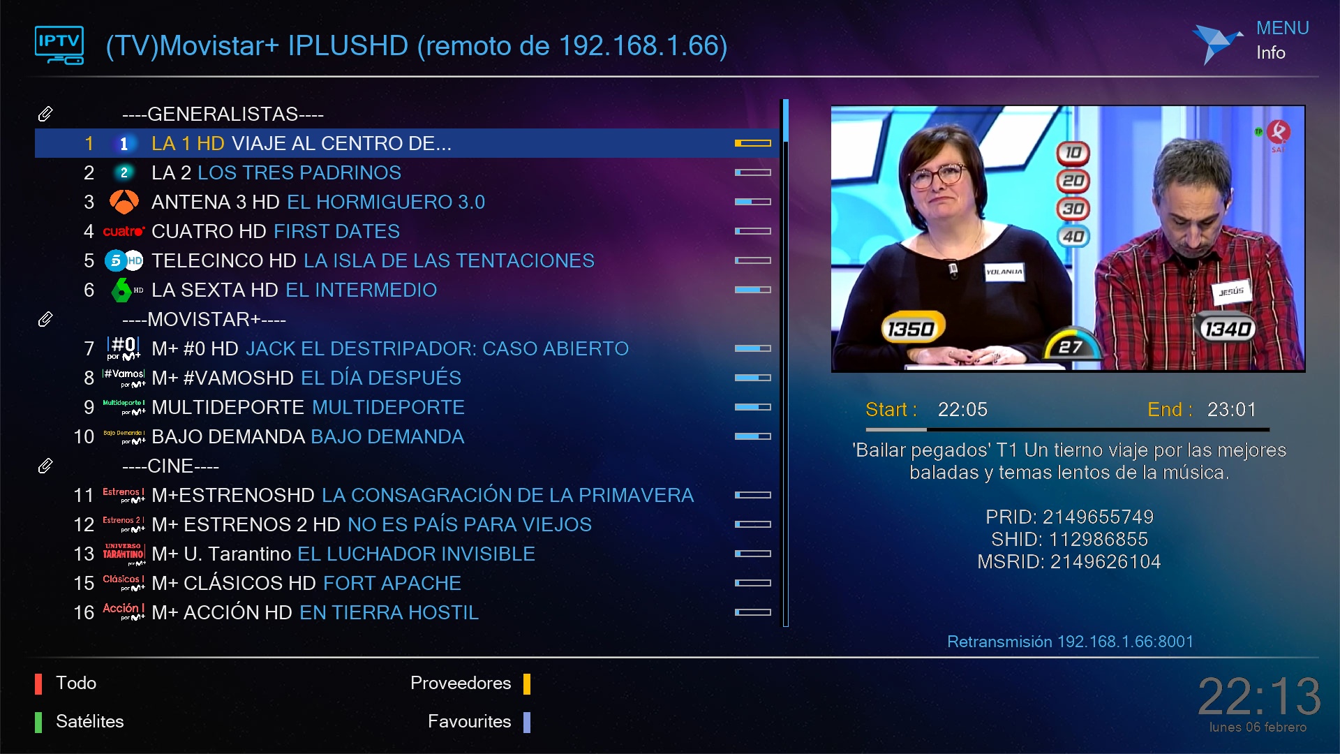 - Puerto 8001: Puerto a traves del cual se realiza streaming de un canal de nuestro receptor a otro dispositivo.
