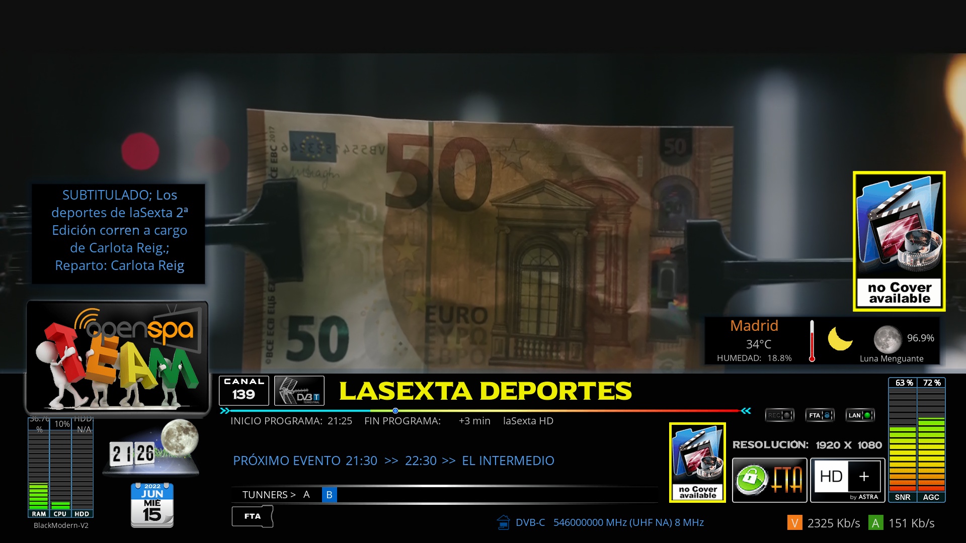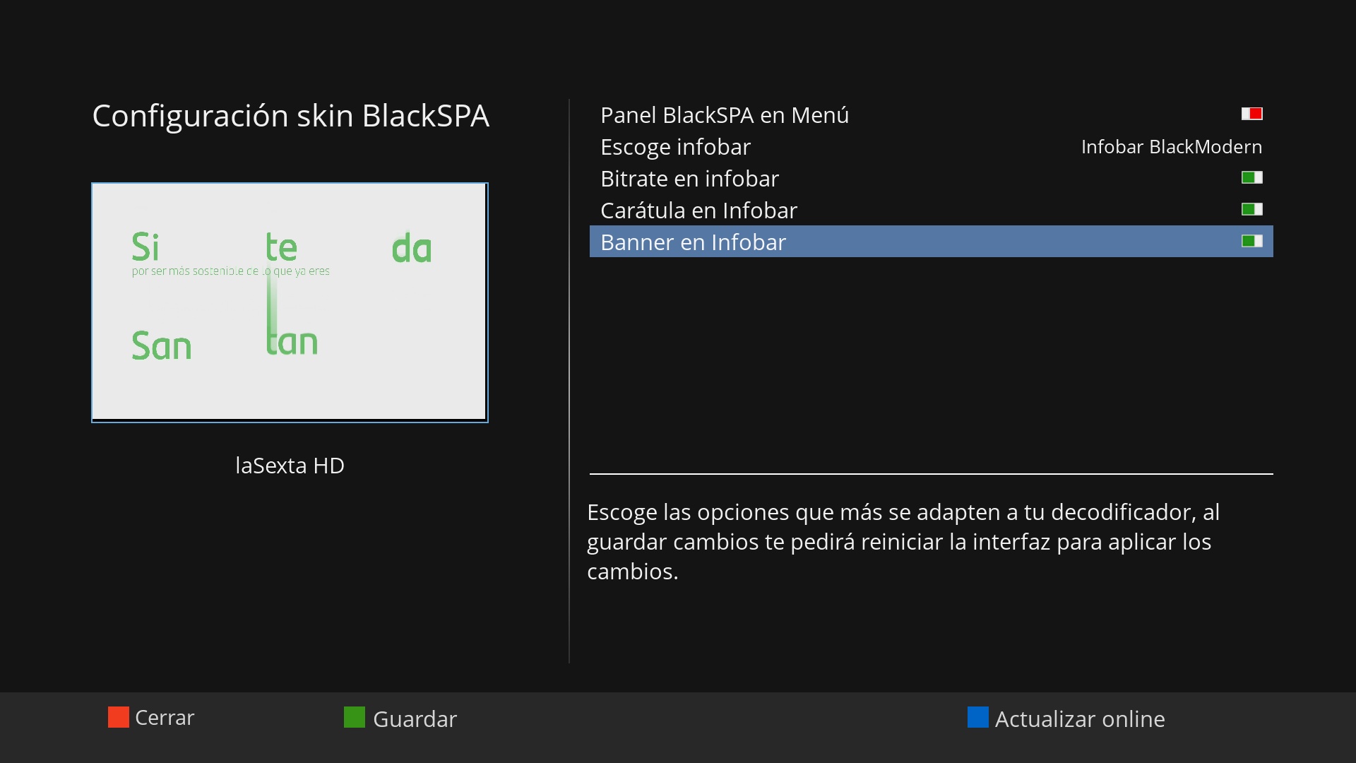 Blackmodern es una modificacion del infobar del Skin BlackSpa en imagen Openspa, con el cambio a python3 en version 8.0.001, los archivos no fueron convertidos a python3 por lo que esta modificacion del infobar no funciona correctamente.