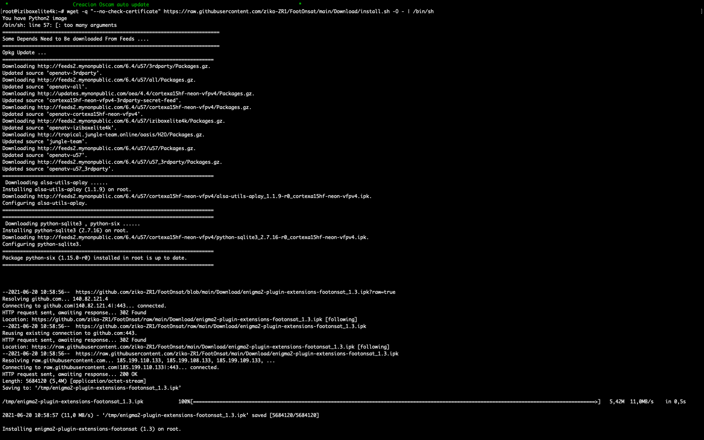 FootOnsat es compatible y realizado para imagenes OE Allianze tanto con python 2 y python 3(openatv 6.5 o 7.0), asi como para receptores Dreambox, la instalacion la podemos realizar usando el script que sus creadores proporcionan: ver script