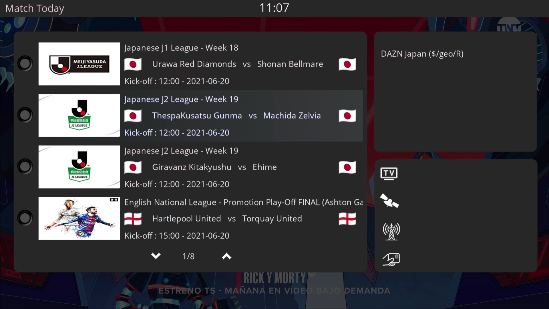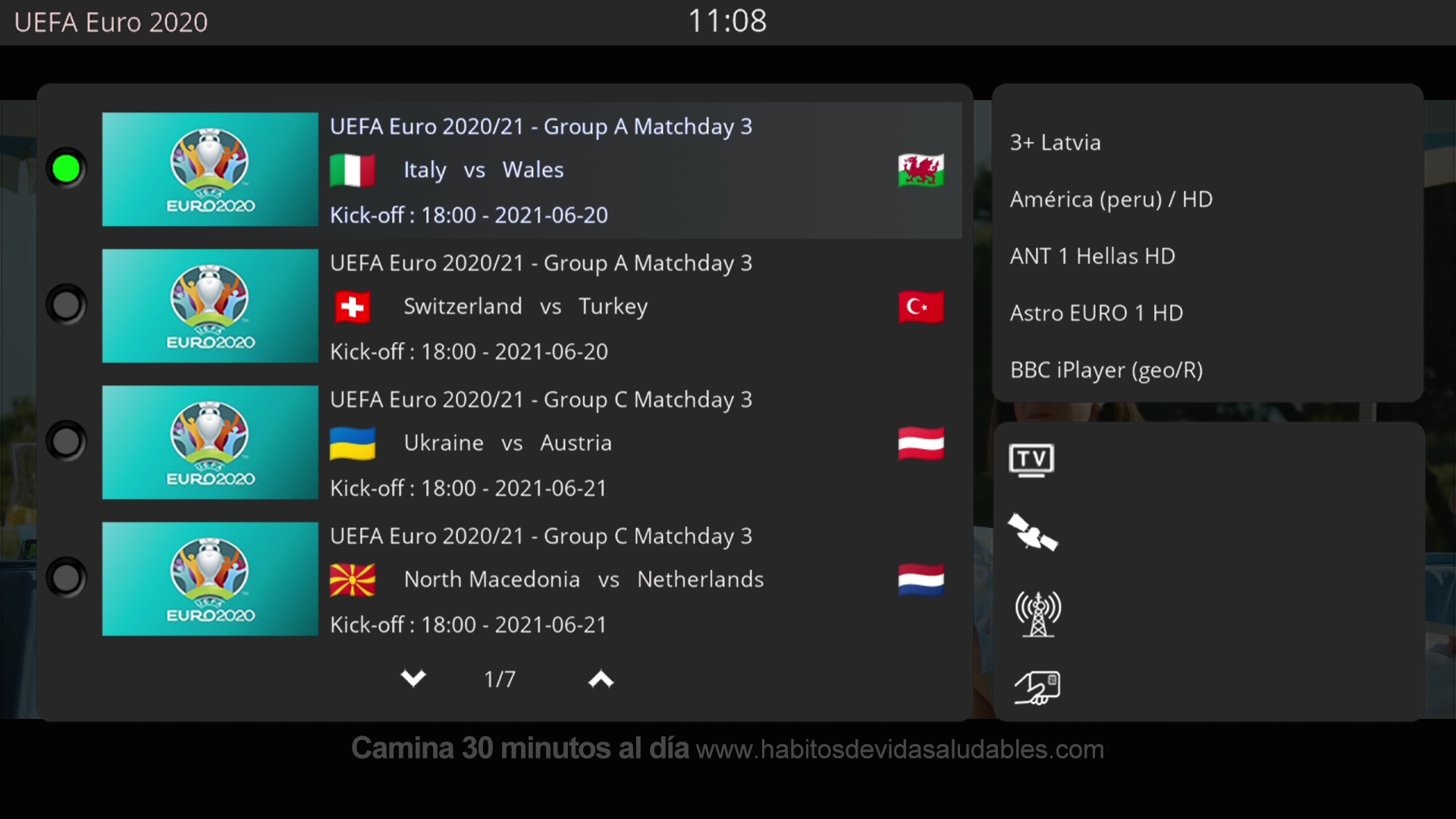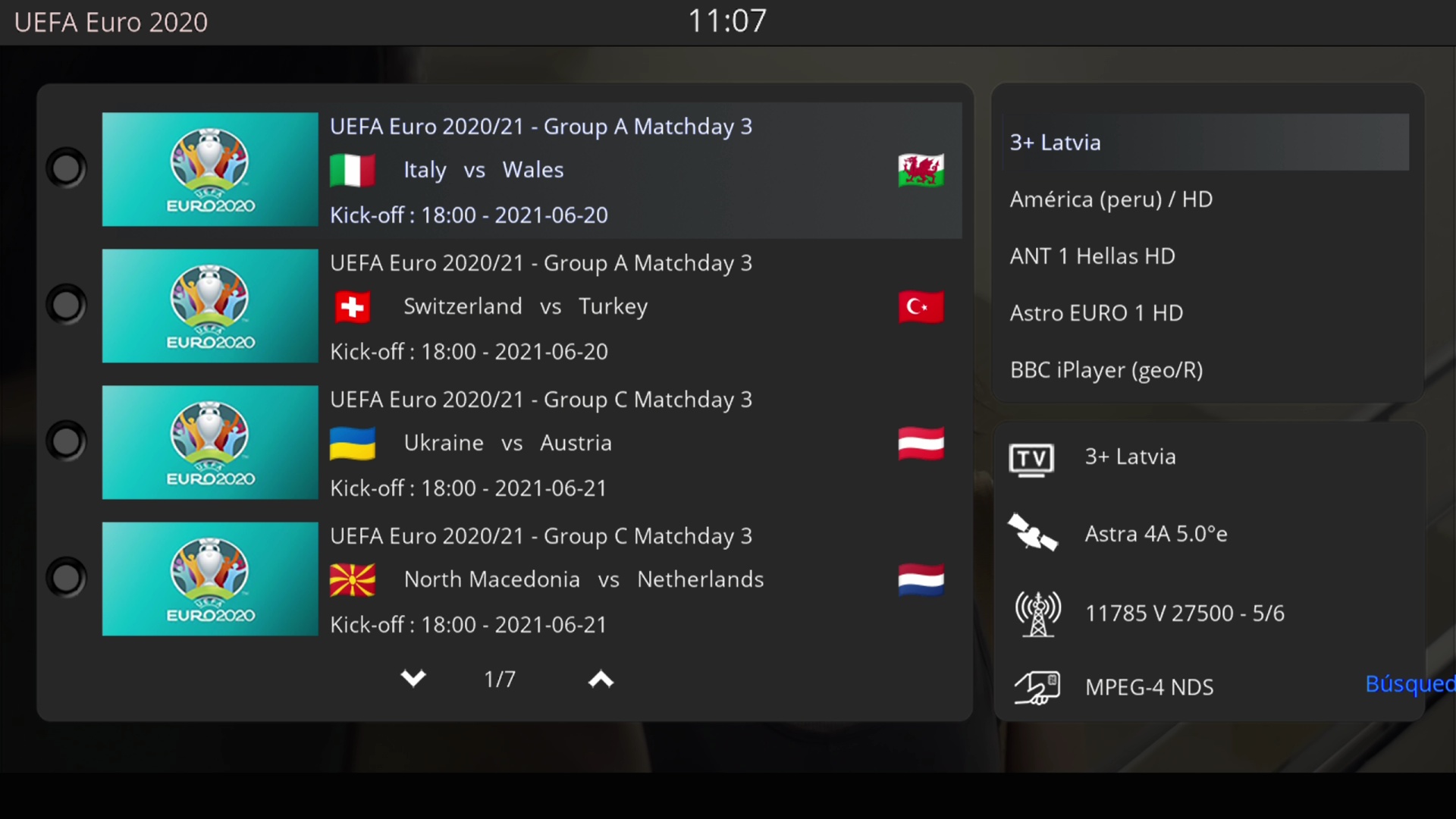 Si pulsamos flecha derecha nos mostrara en que satelite podemos encontrar el evento de futbol seleccionado