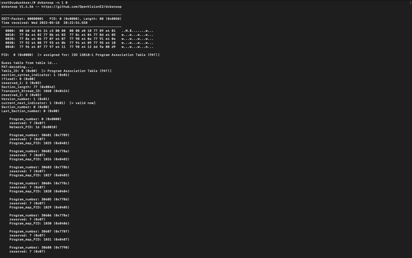 - En el caso de loguear el pid 0 (decimal) nos da información sobre todos los programas presentes en un Transport Stream