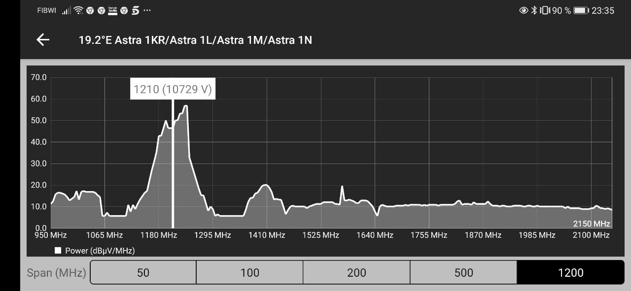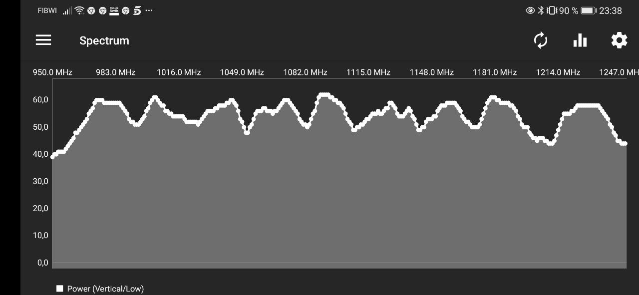 Que ocurre que el Tuner esta usando la frecuencia intermedia 979 mhz , pero como hemos comentado e lnb nos esta enviando todo el rango de frecuencias correspondientes en este ejemplo a la banda baja, como podemos ver en el spectro: