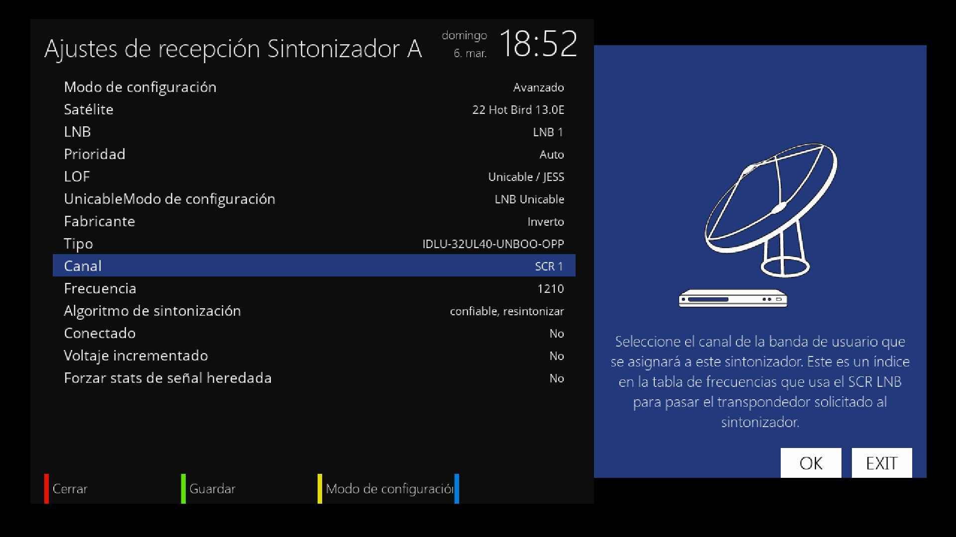 Una vez hemos asignado en el receptor la frecuencia SCR correspondiente a la banda de usuario del lnb unicable, cuando seleccionamos un canal en el receptor ocurre lo siguiente: