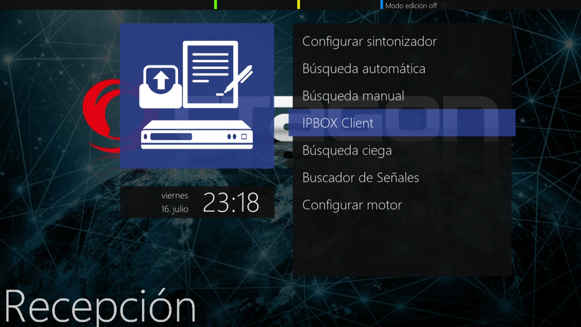 Una vez hemos realizado la instalacion el acceso nos aparecera en menu + configuracion + busqueda de canales con el nombre de IPBOX client