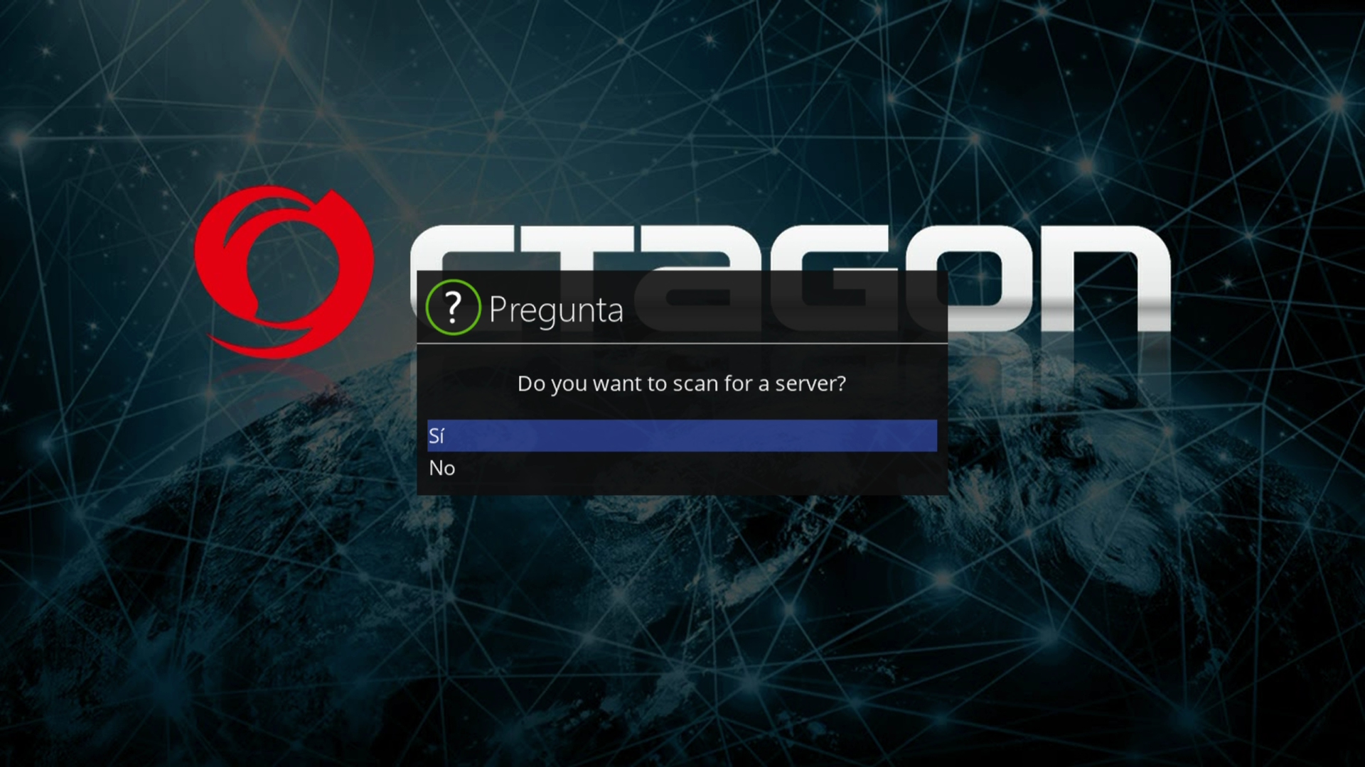 Al iniciar por primera vez nos preguntara si deseamos realizar un escaneo de redes, esto es si el receptor servidor se encuentra en la misma red que el receptor cliente, en este ejemplo que ambos receptores se hallan en la misma red pulsamos en si
