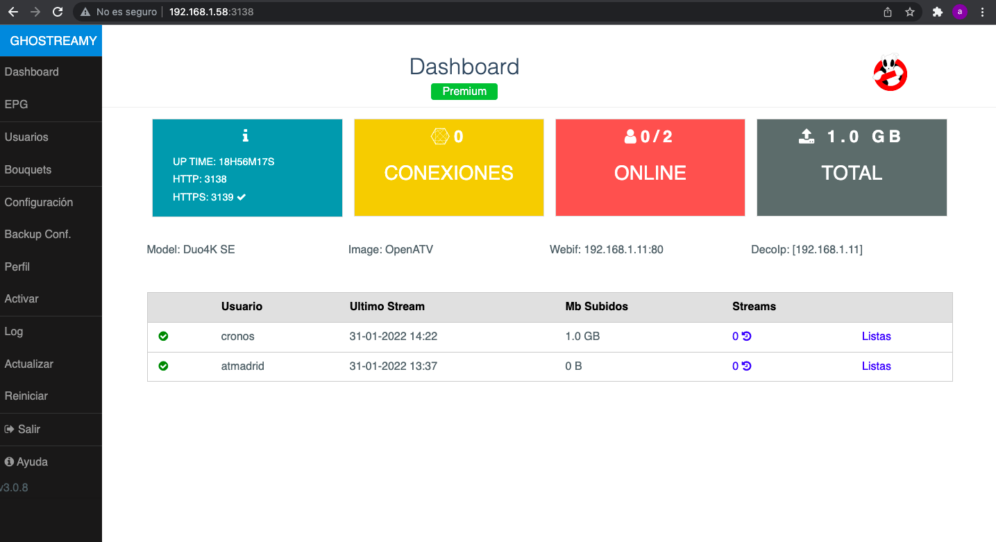 La instalacion de Ghostreamy en el dispositivo a traves de docker nos va a proporcionar la conexion al receptor enigma2 para de este modo poder gestionar el streaming del mismo, de este modo podremos compartir los canales del receptor enigma2 a traves de nuestro dispositivo donde hemos instalado Ghostreamy (Nuc, Odroid N2 …).