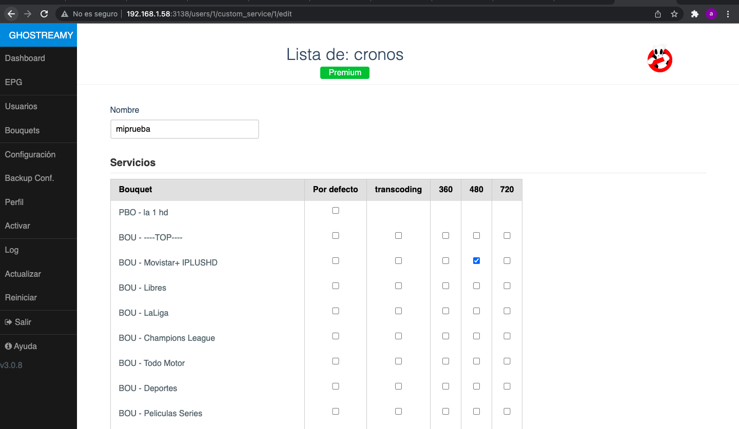 De esta manera podremos crear listas canales con ese tipo de transcodificacion