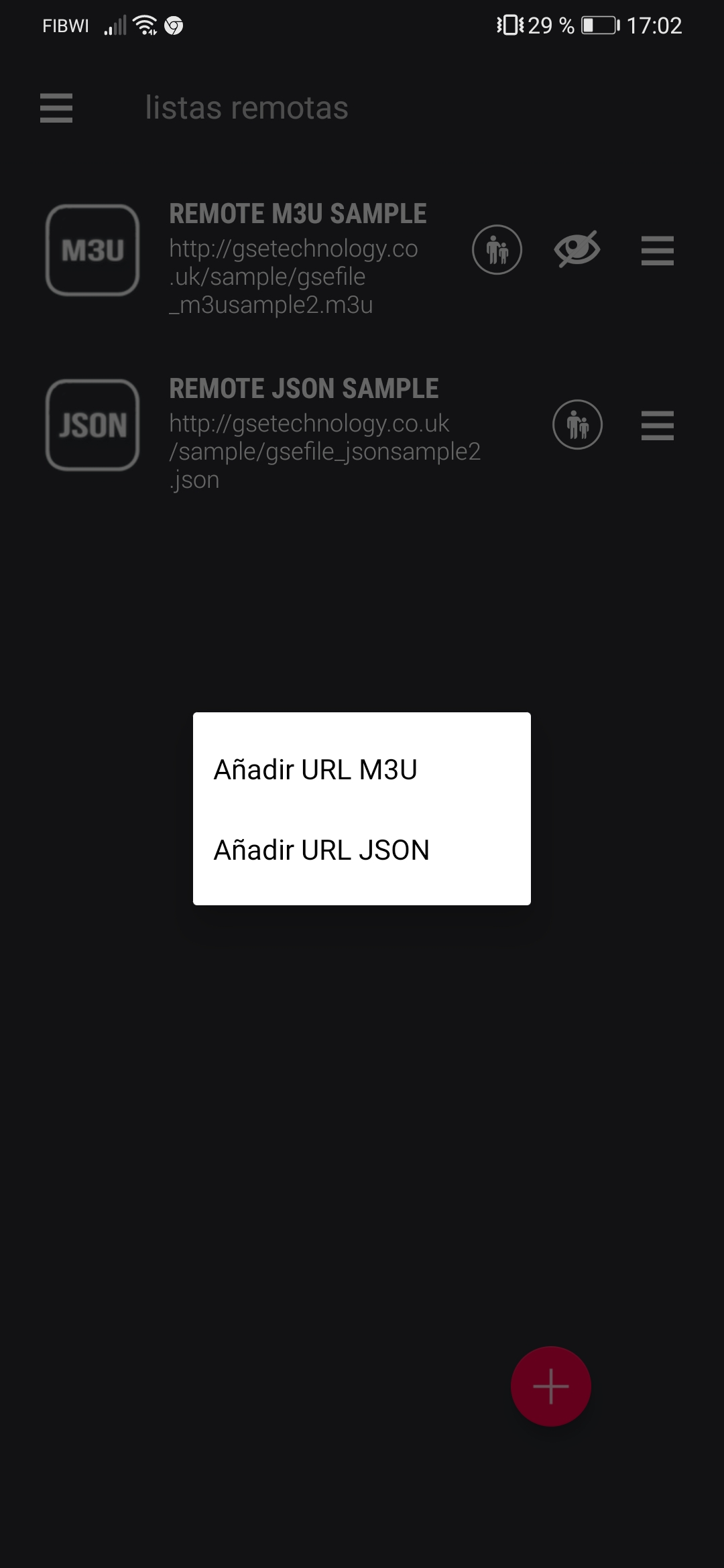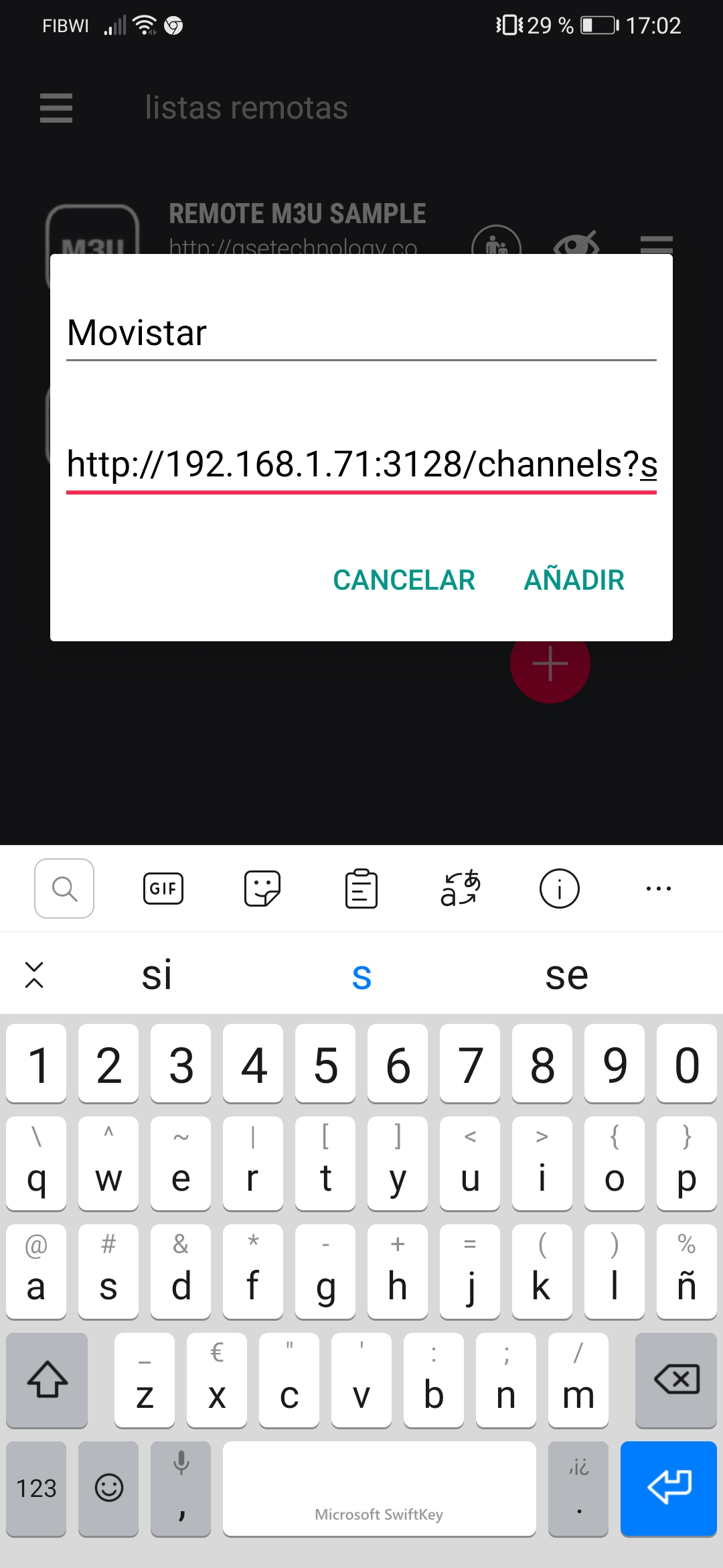 Una vez abierta la app iptv pro nos aparecera pulsando + para poder seleccionar la lista m3u en este caso lo vamos a realizar mediante url generada en pystreamy, simplemente pulsamos sobre añadir url e introducimos la url de pystreamy y le damos un nombre a la lista en este caso Movistar