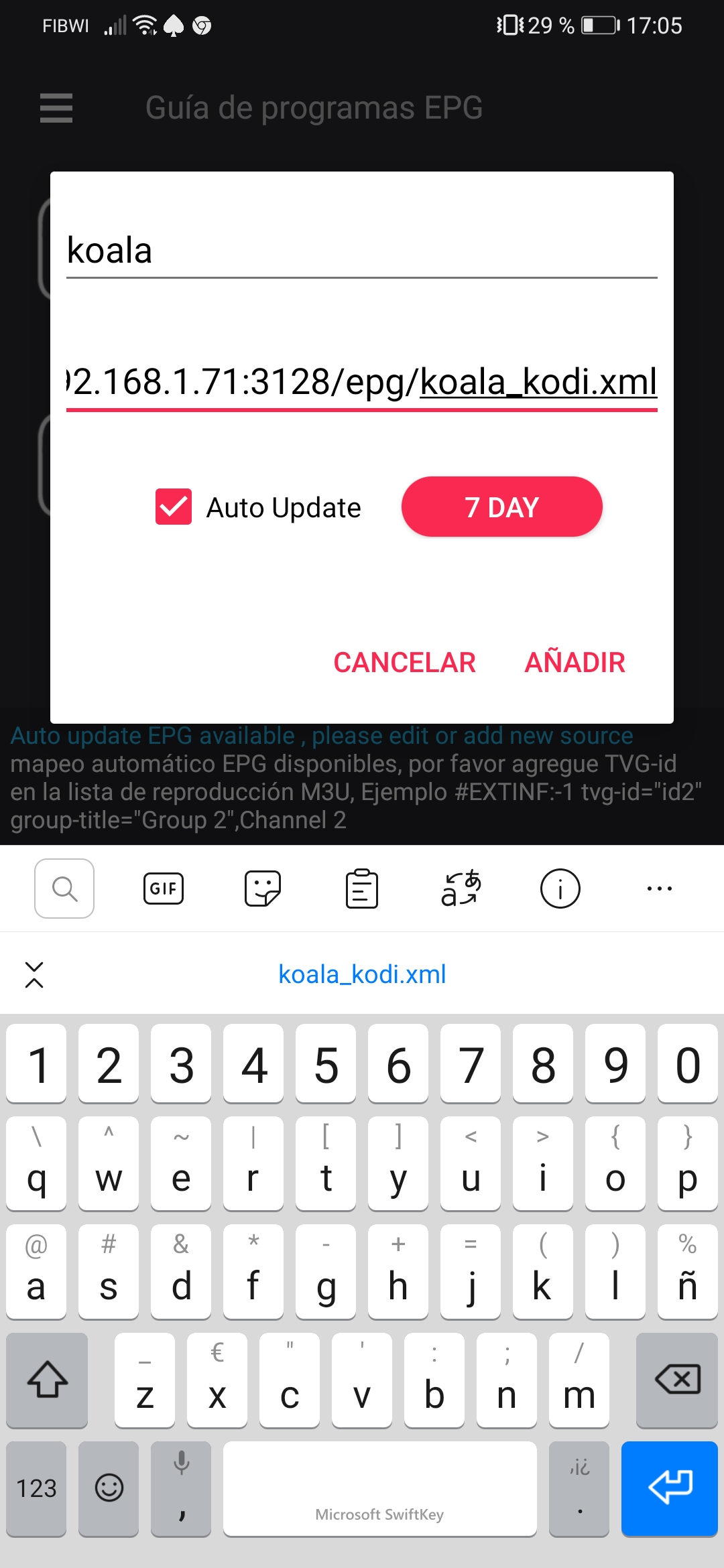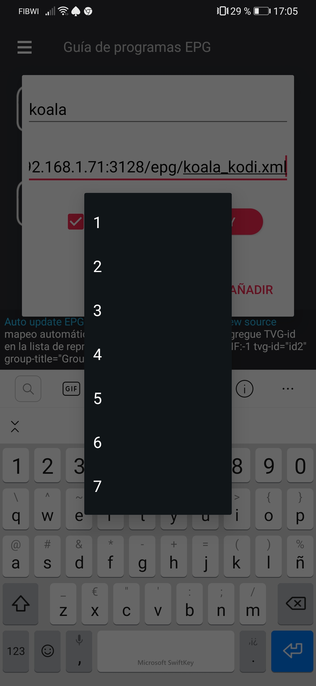 Para obtener epg 7 dias de la url koala introducida, pulsamos sobre 1 dia y en el despegable seleccionamos 7 dias damos a añadir y se realizara la descarga epg