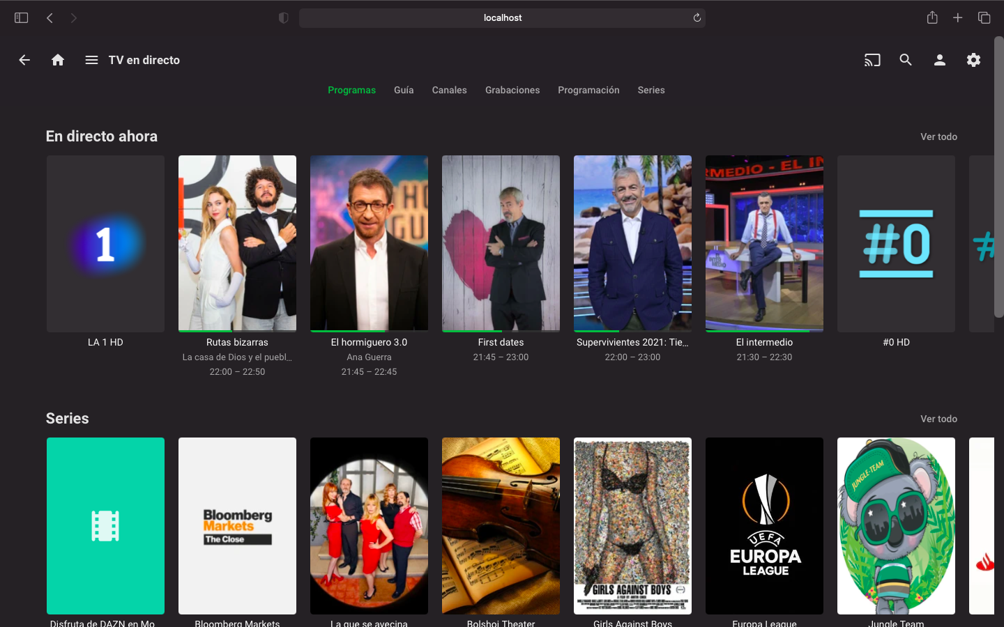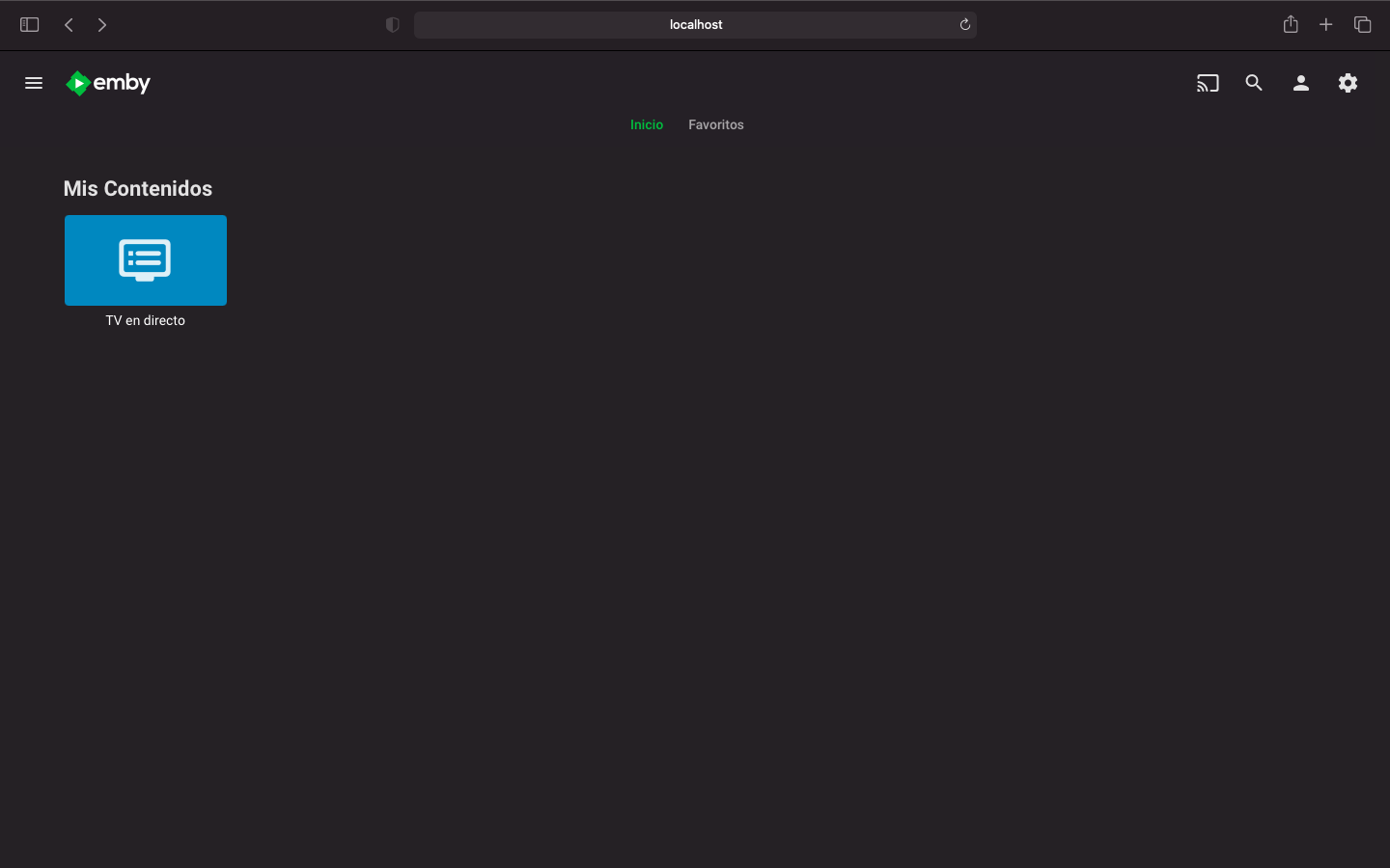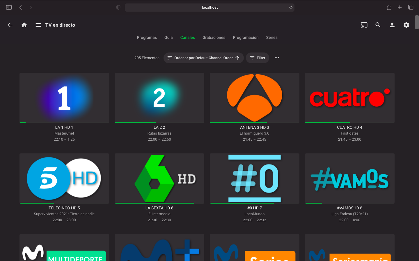 9. Ahora ya en el menu principal de emby podemos disfrutar de nuestros canales