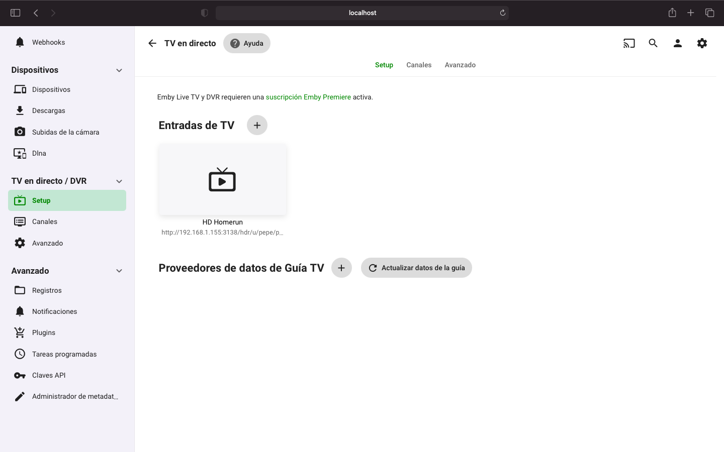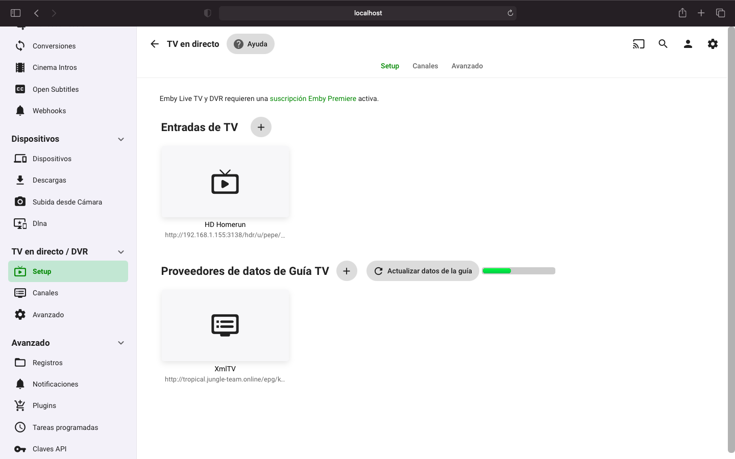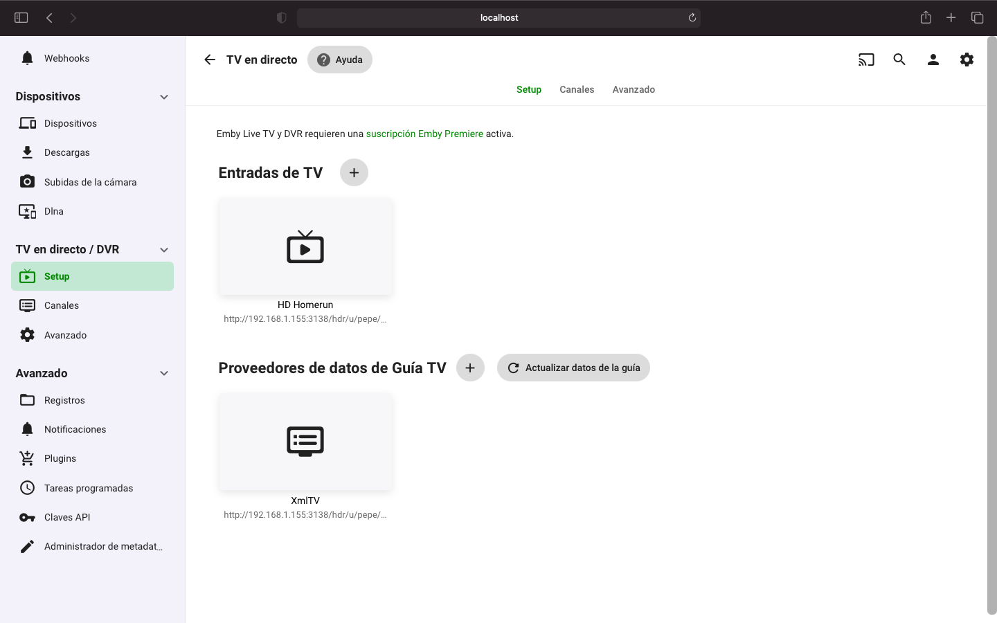Ahora vamos a ver como configurar nuestras listas canales y epg del receptor a traves de ghostreamy en el servidor Emby (es necesario ser premium en Emby)