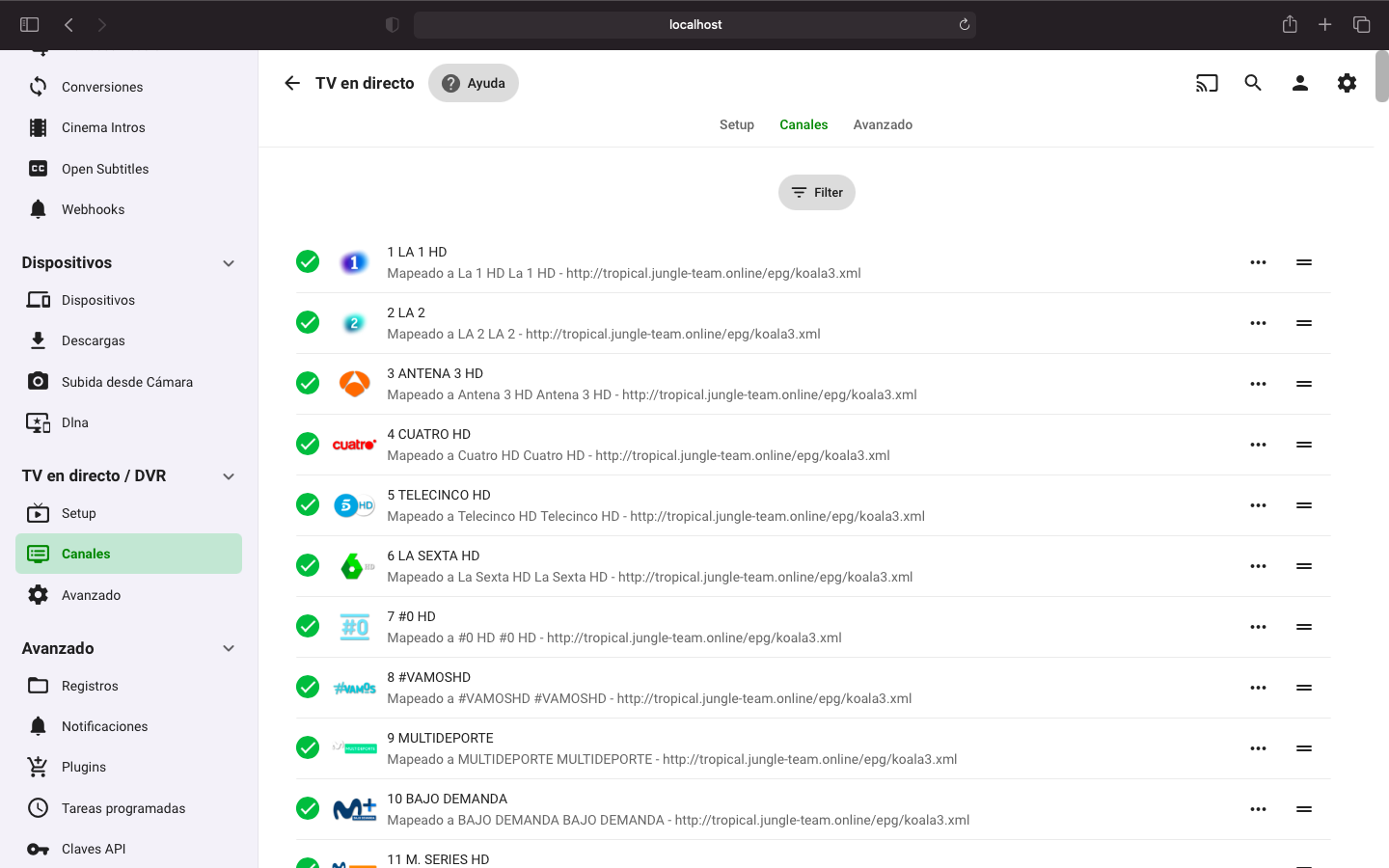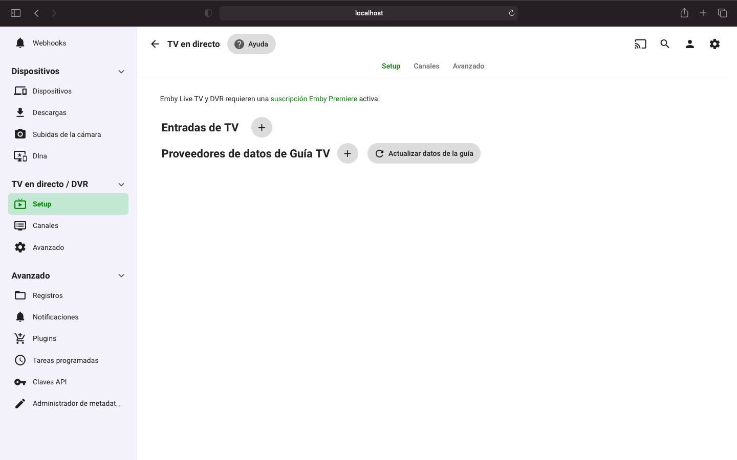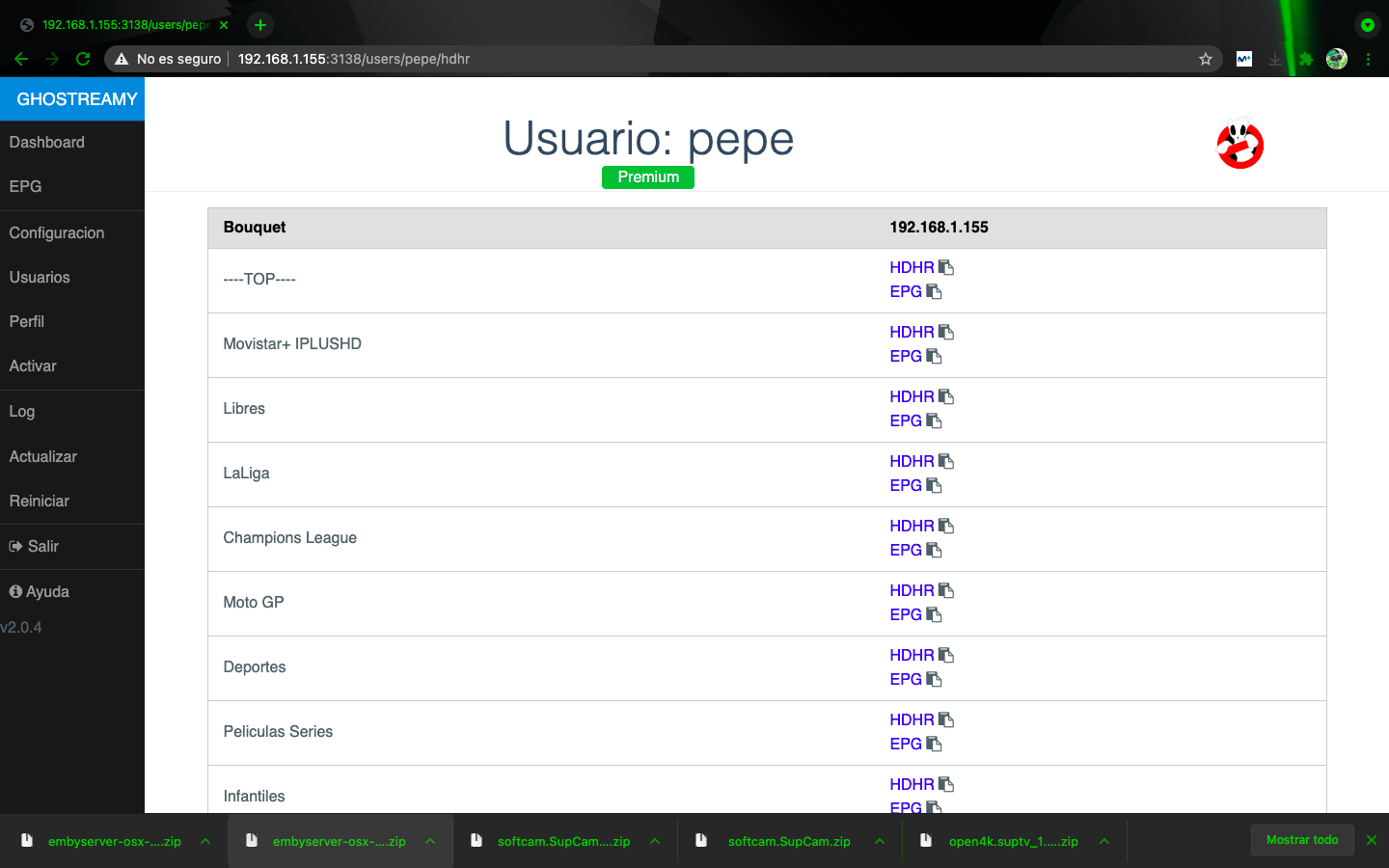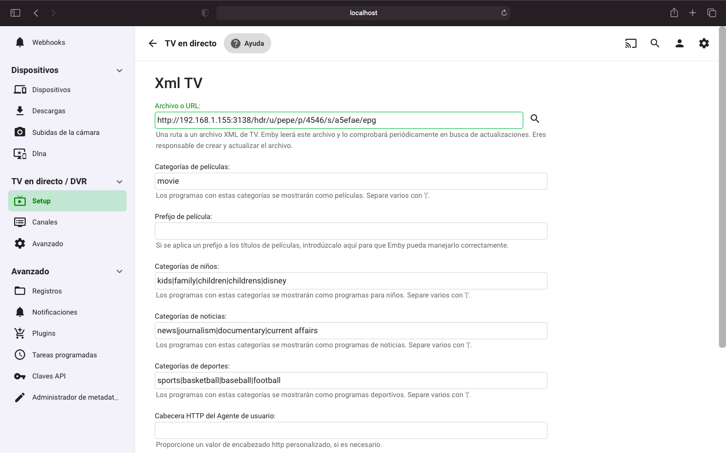 Ahora vamos a ver como configurar nuestras listas canales y epg del receptor a traves de ghostreamy en el servidor Emby (es necesario ser premium en Emby)