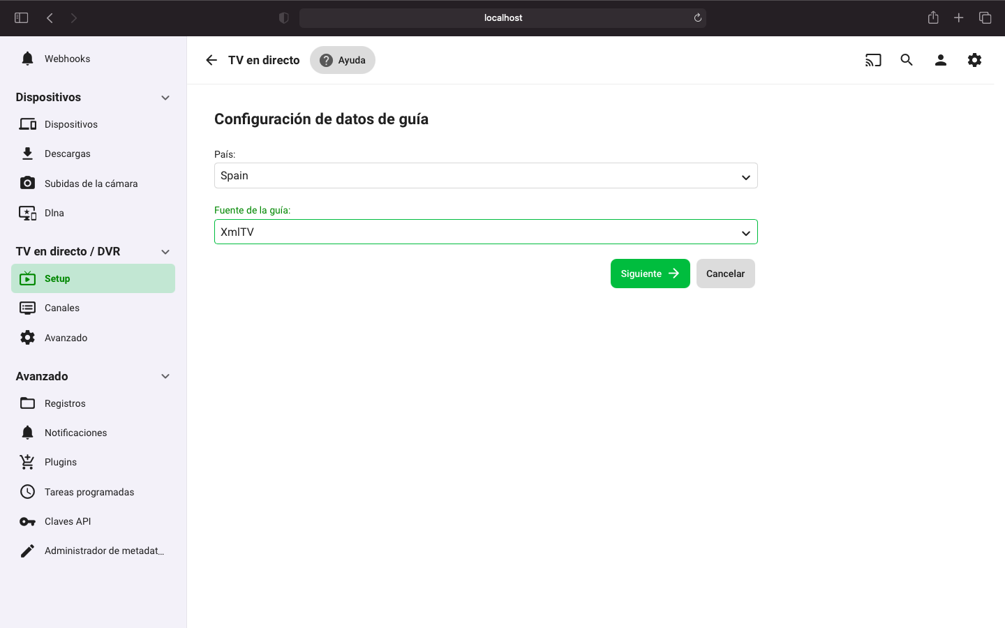 6. Seleccionamos nuestro pais en fuente de guia marcamos Xmltv