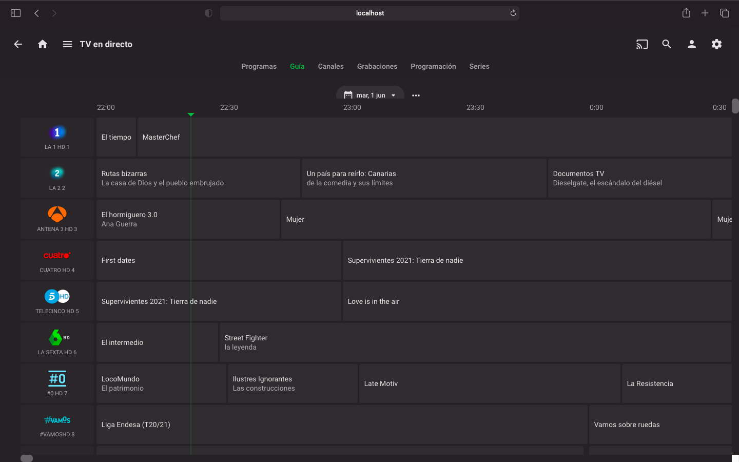 Ahora si nos vamos a canales ya observaremos que nos aparecen los canales correspondientes a los que añadimos a traves de ghostreamy