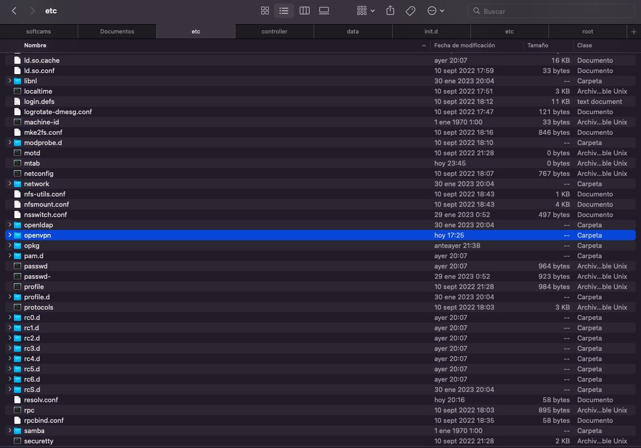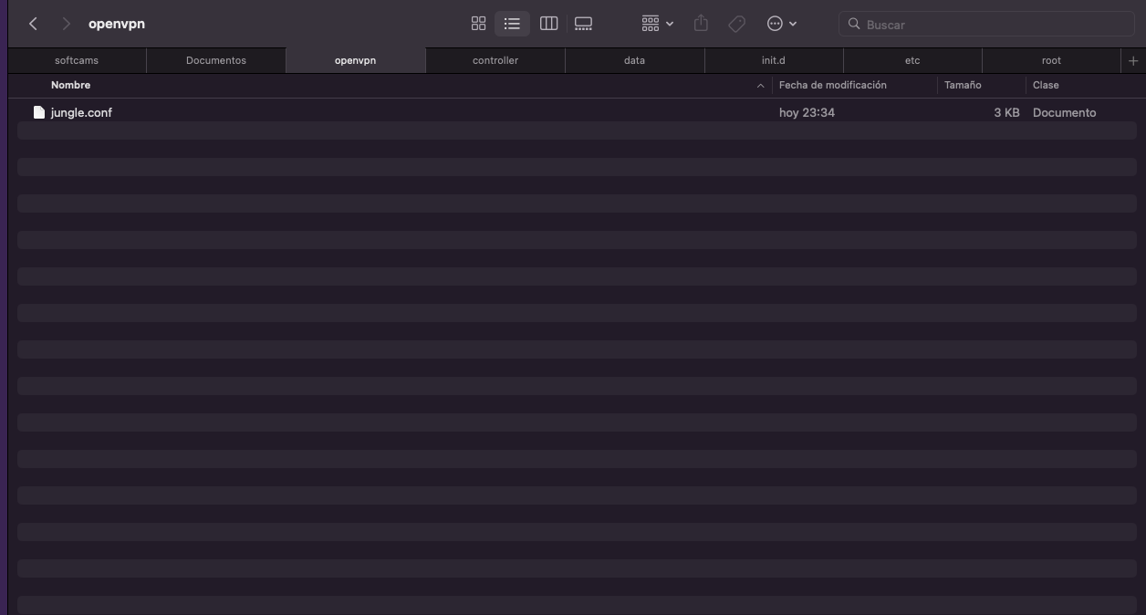 A continuacion introduciremos el archivo .*conf en el interior del directorio creado (/etc/openvpn)