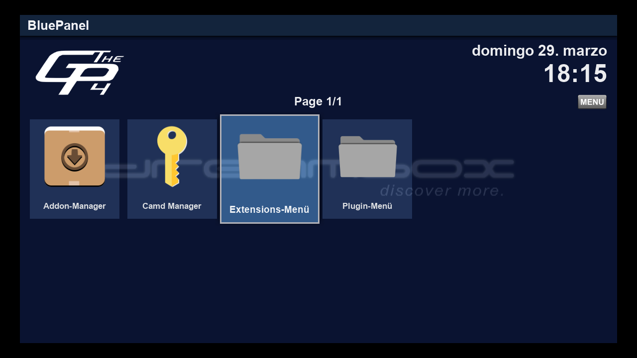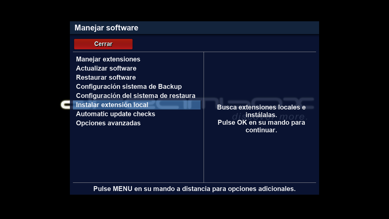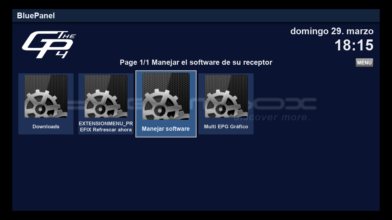 1.2 Ahora vamos a proceder a su instalacion para ello lo podemos realizar desde el menu gp4, para ello pulsamos boton azul + Extension menu + manejar software