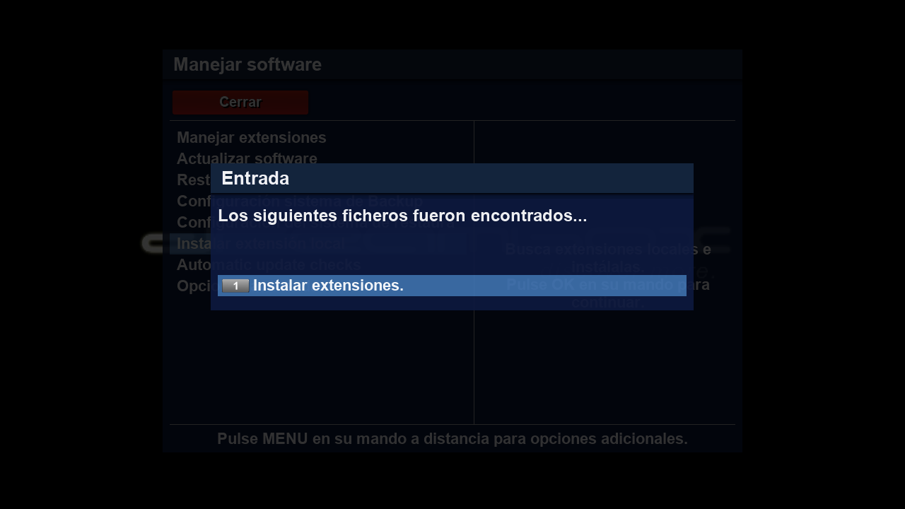 1.3 A continuacion pulsamos sobre instalar extensiones y seleccionamos el archivo que introdujimos en /tmp