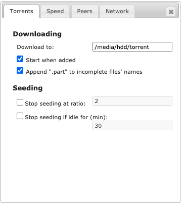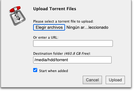 y ponemos la ruta que deseemos, que sera un disco duro o pendrive que tengamos montado en nuestro receptor, en este ejemplo /media/hdd/torrent