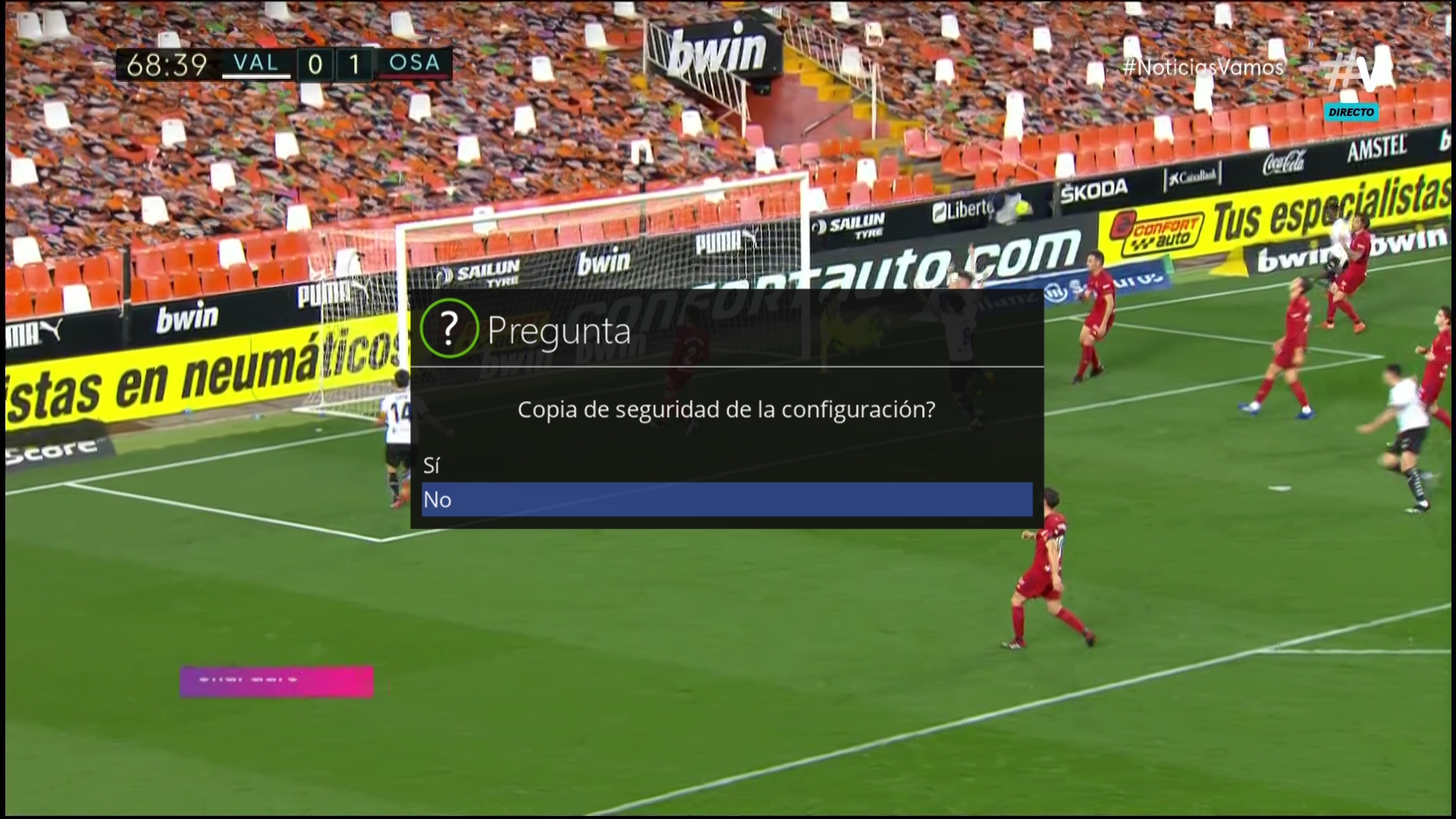 5. Copia seguridad de configuración pulsamos en no