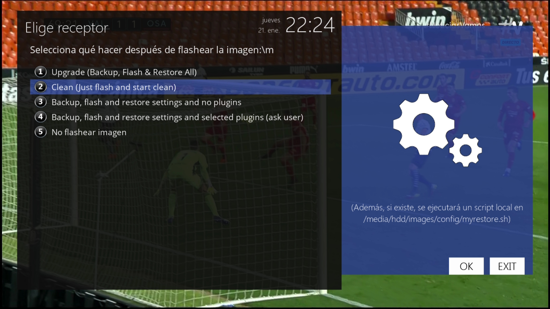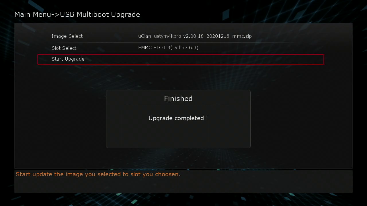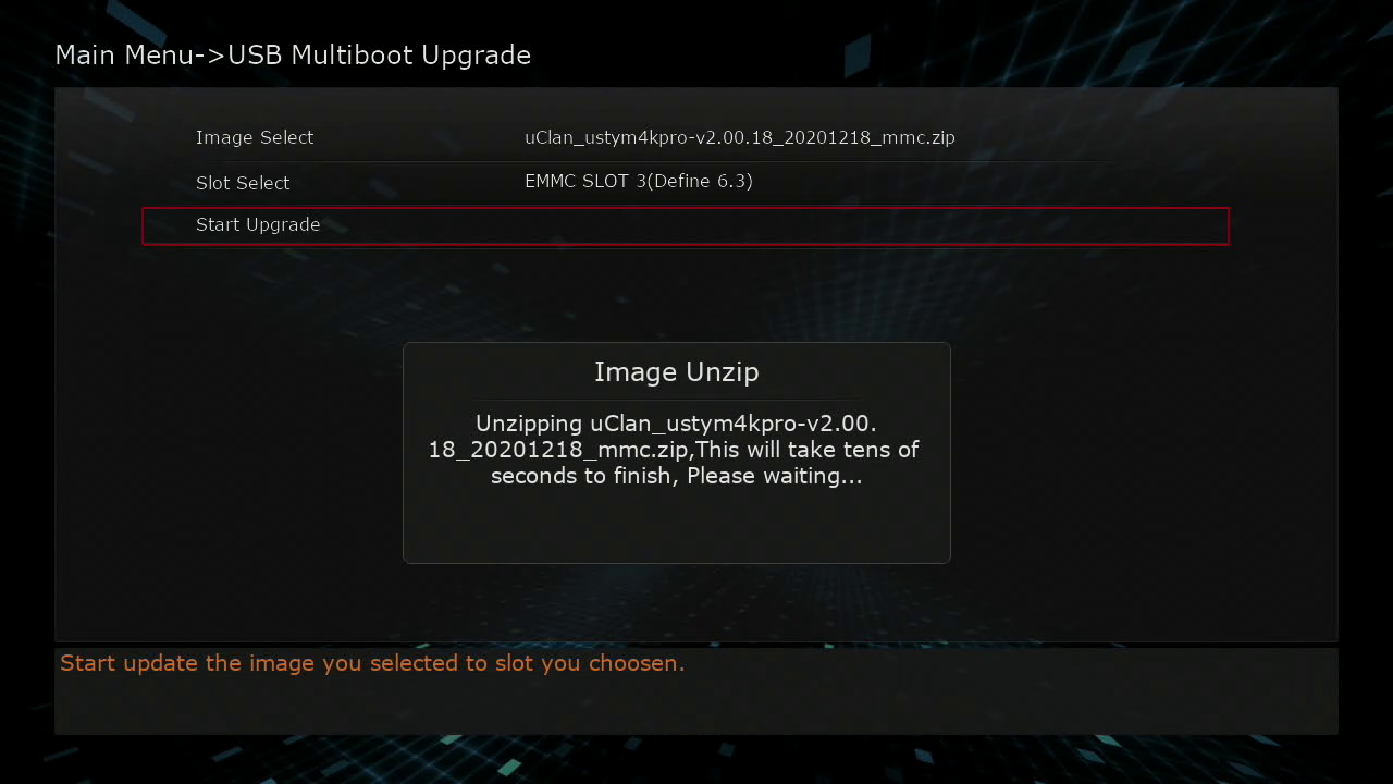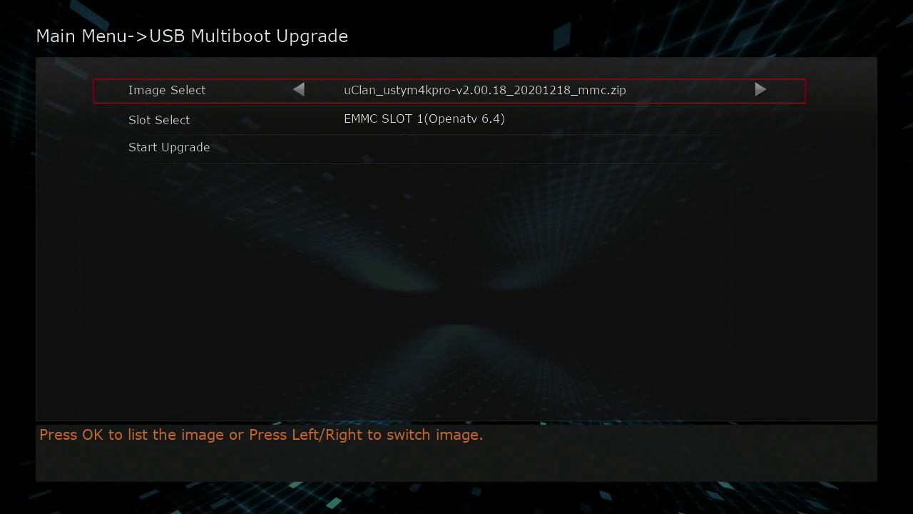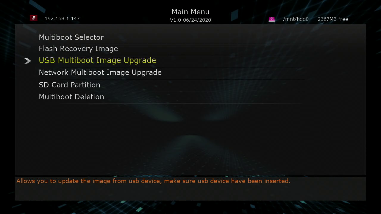 2. Ponemos el receptor en recovery mode y seleccionamos usb multiboot image upgrade