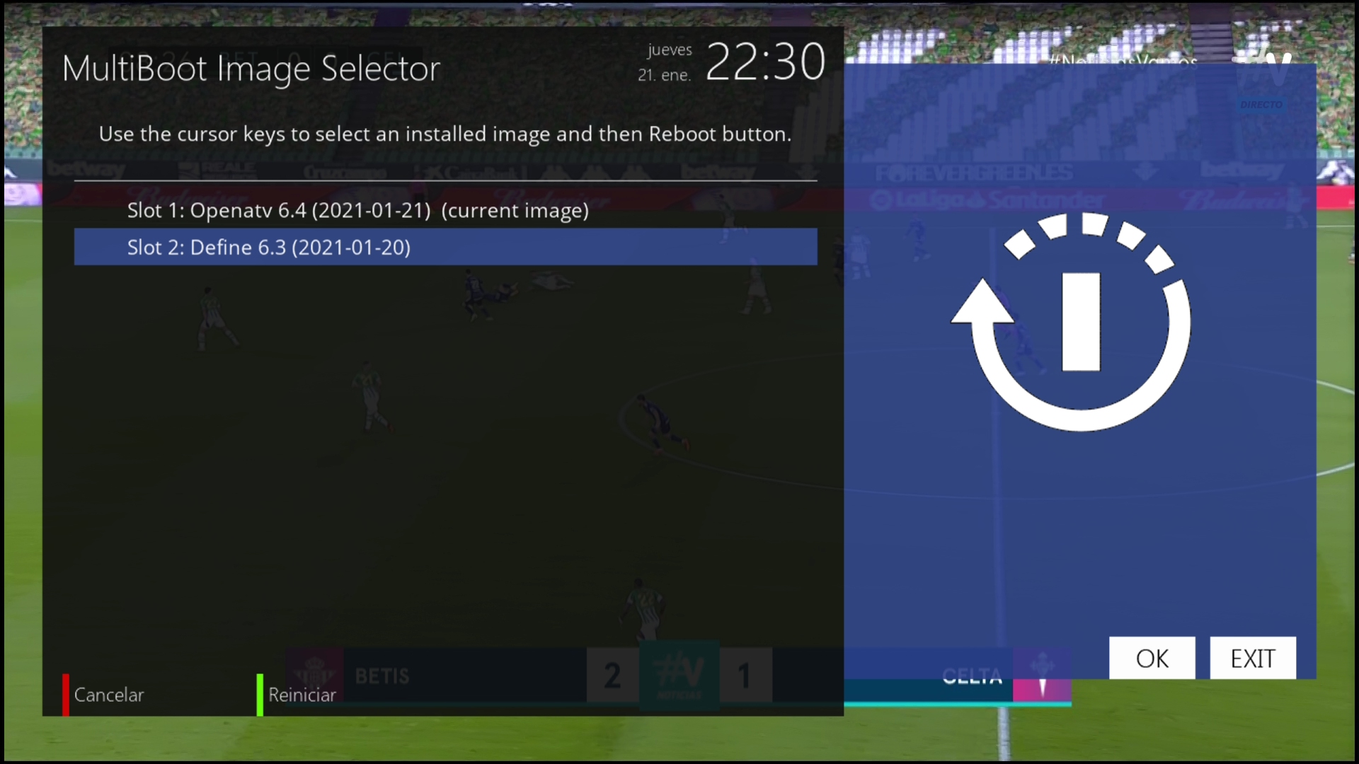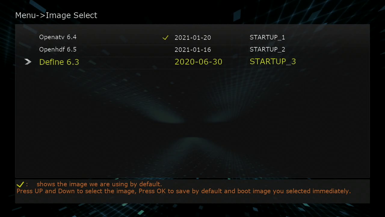 5. Ahora en multiboot Selector ya podemos seleccionar la imagen con que arrancar el receptor