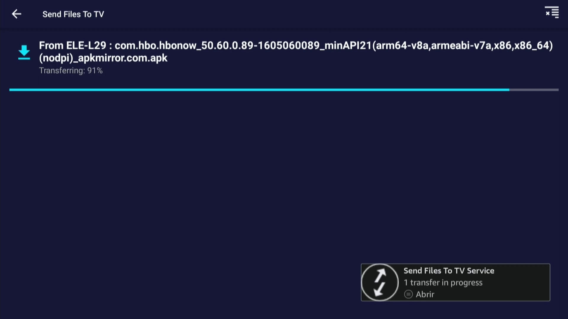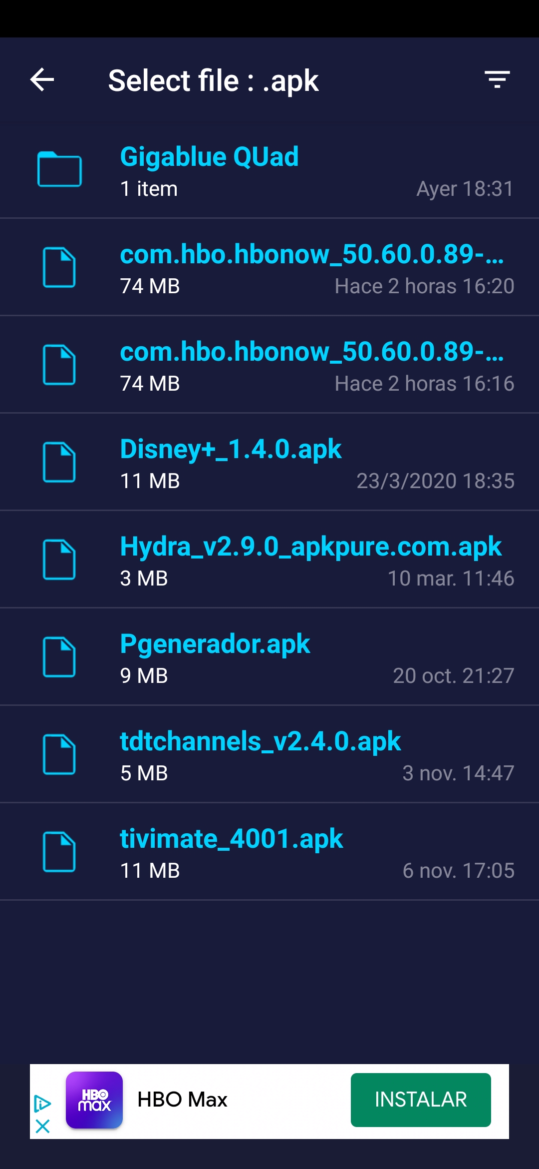 10. Nos aparecera el archivo que hemos enviado a nuestro dispsitivo en este caso la app de hbo max