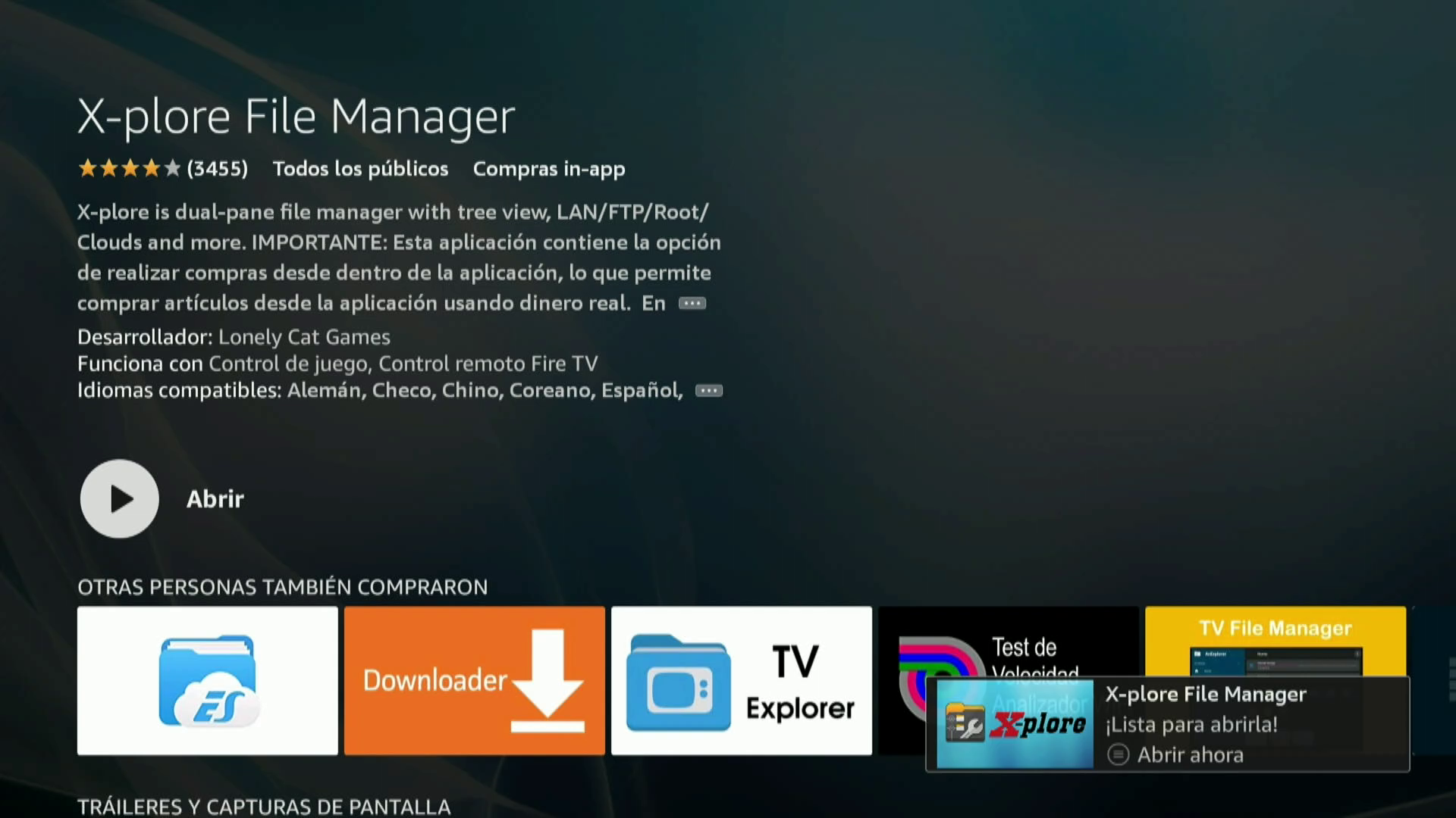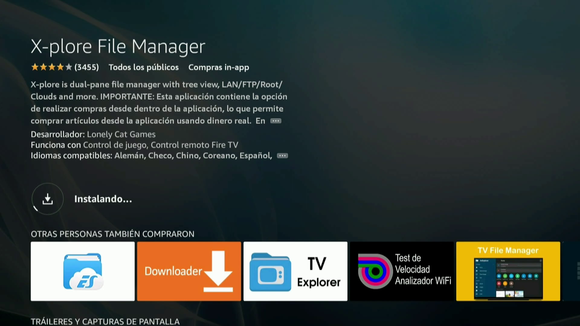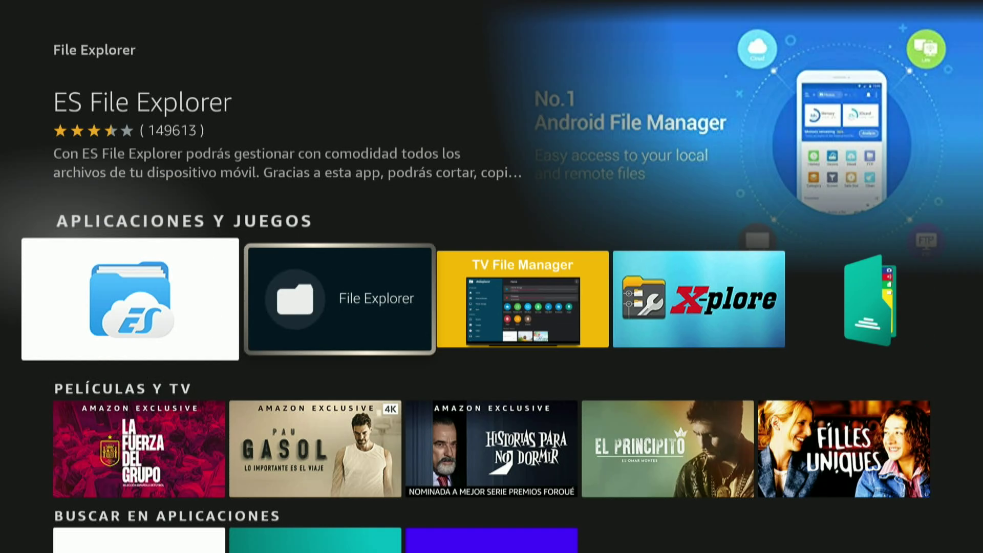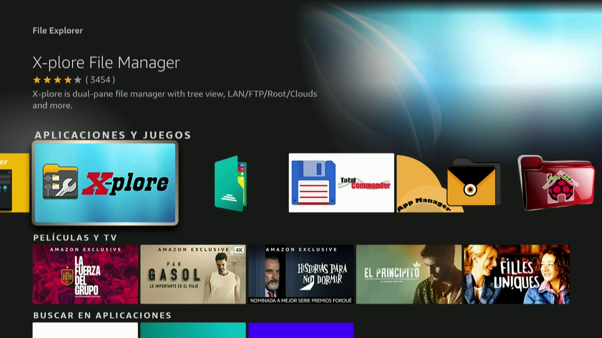 6. Una vez realizada la transferencia necesitaremos instalar en nuestra fire stick 4k un gestor de archivos para acceder al archivo descargado y realizar su instalacion, aunque hay diversos en este ejemplo vamos a isntalar x-plore file manager