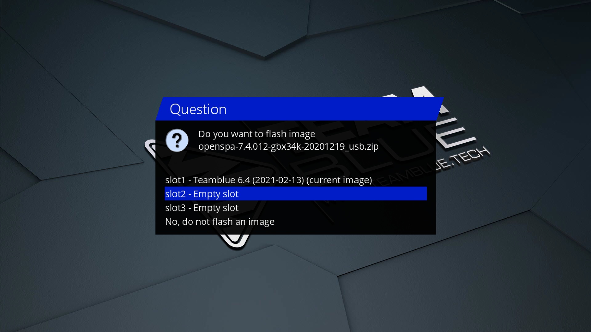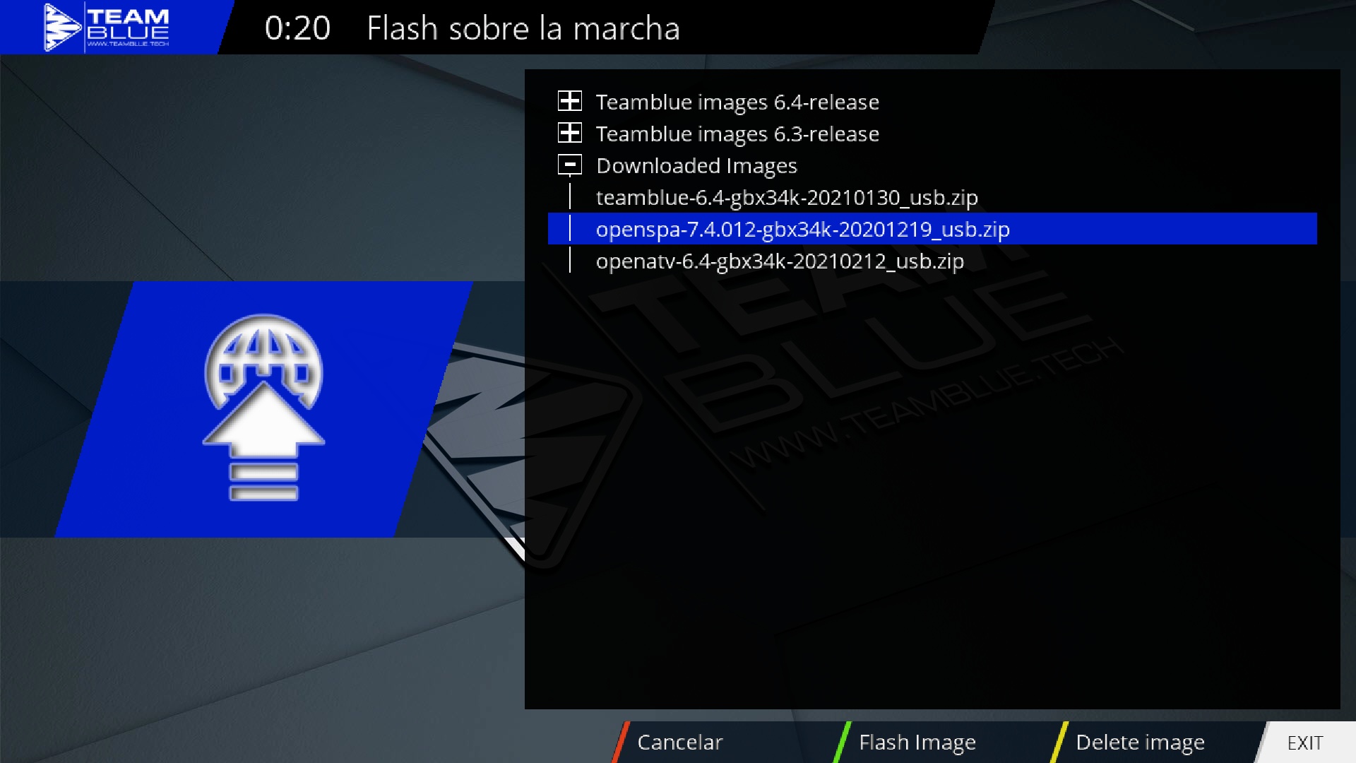 13. Seleccionamos la imagen con la que deseamos arrancar el receptor