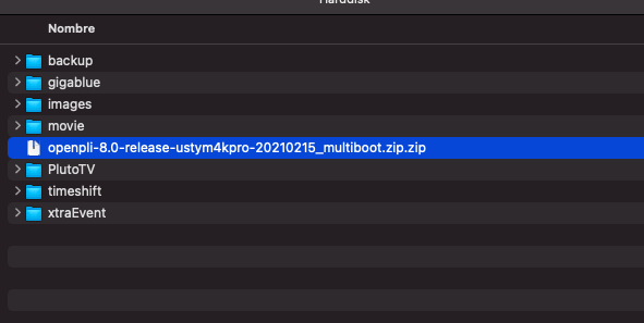 Ahora introducimos el archivo descargado y renombrado en la raiz de un pendrive y lo introducimos en la ranura usb del receptor.