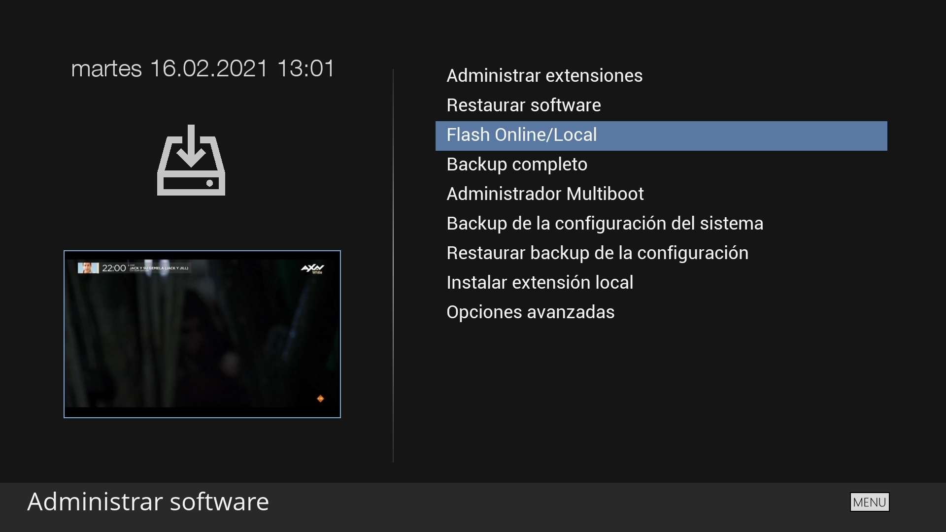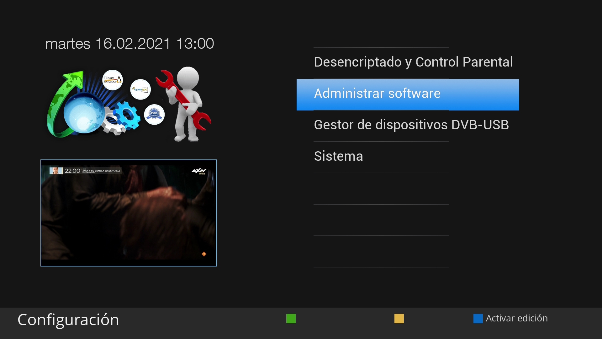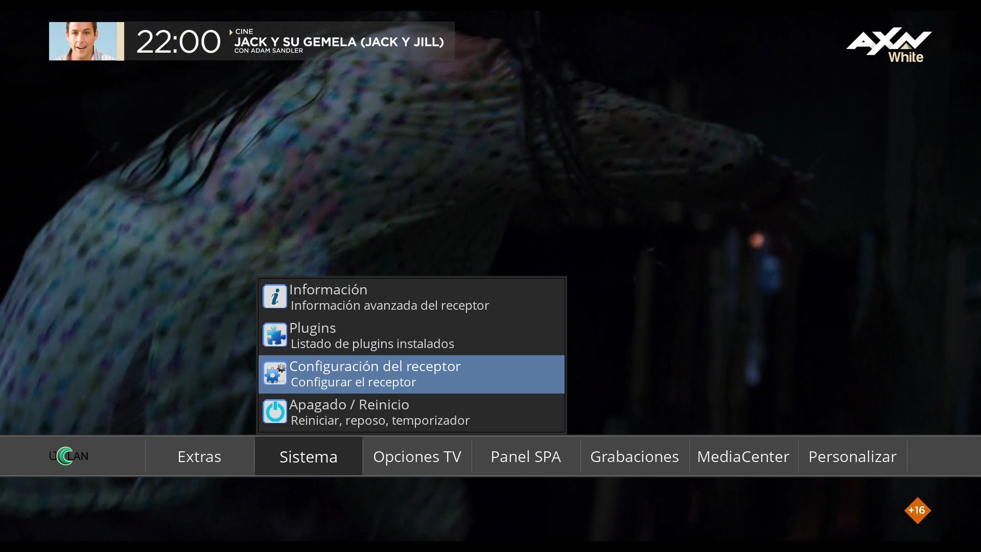 Pulsamos en menu + sistema + configuración del receptor