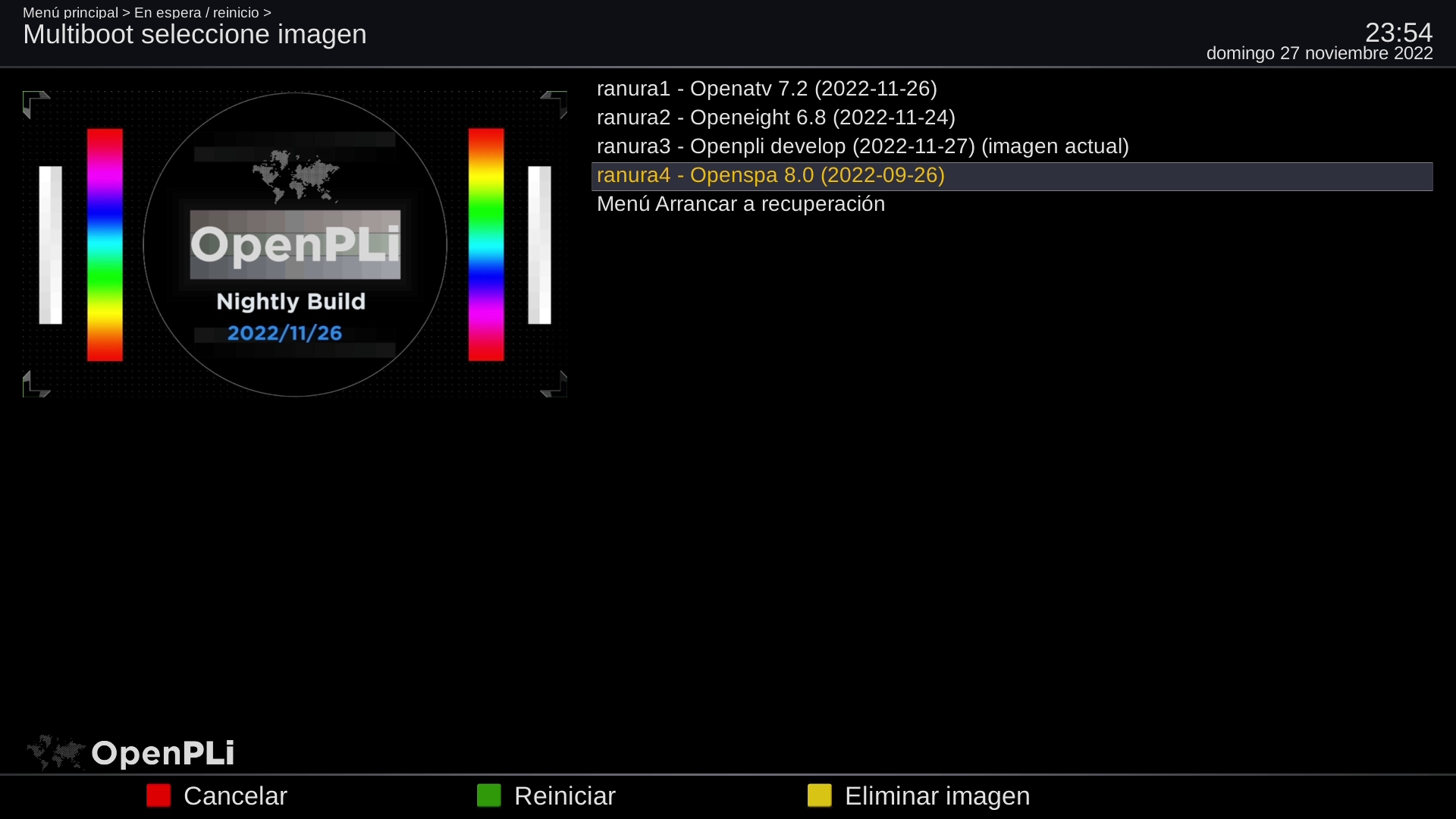 Paso 7: Tras finalizar la instalacion si accedemos al menu multiboot observariamos que la imagen openspa que hemos instalado se halla en la particion 4 como queriamos