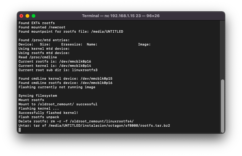 En este ejemplo, deseamos instalar la imagen en la particion (slot numero 4), por lo que el comando a ejecutar es: