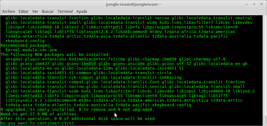 Una vez hemos añadido los sources instalamos kodi 19 con el siguiente comando