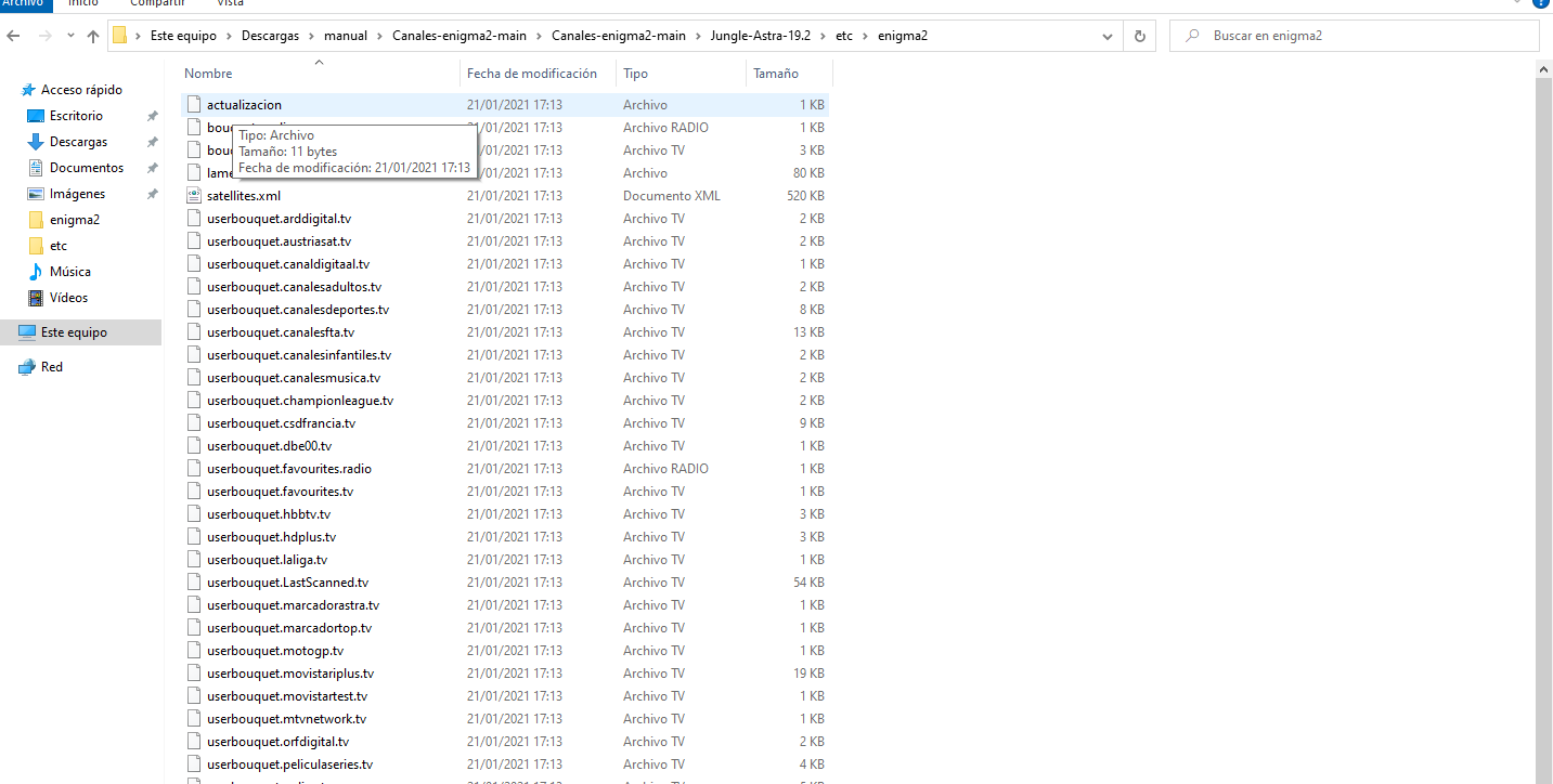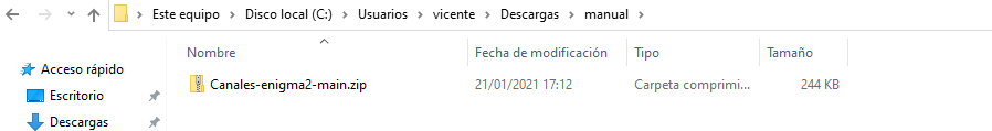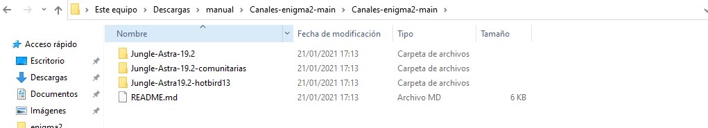 Una vez descargada la lista canales enigma2 jungle-team esta vendra comprimida en zip la descomprimimos: