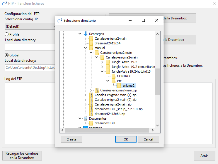Y en la lista que elijamos los archivos de instalación se hallan en la carpeta /etc/enigma2