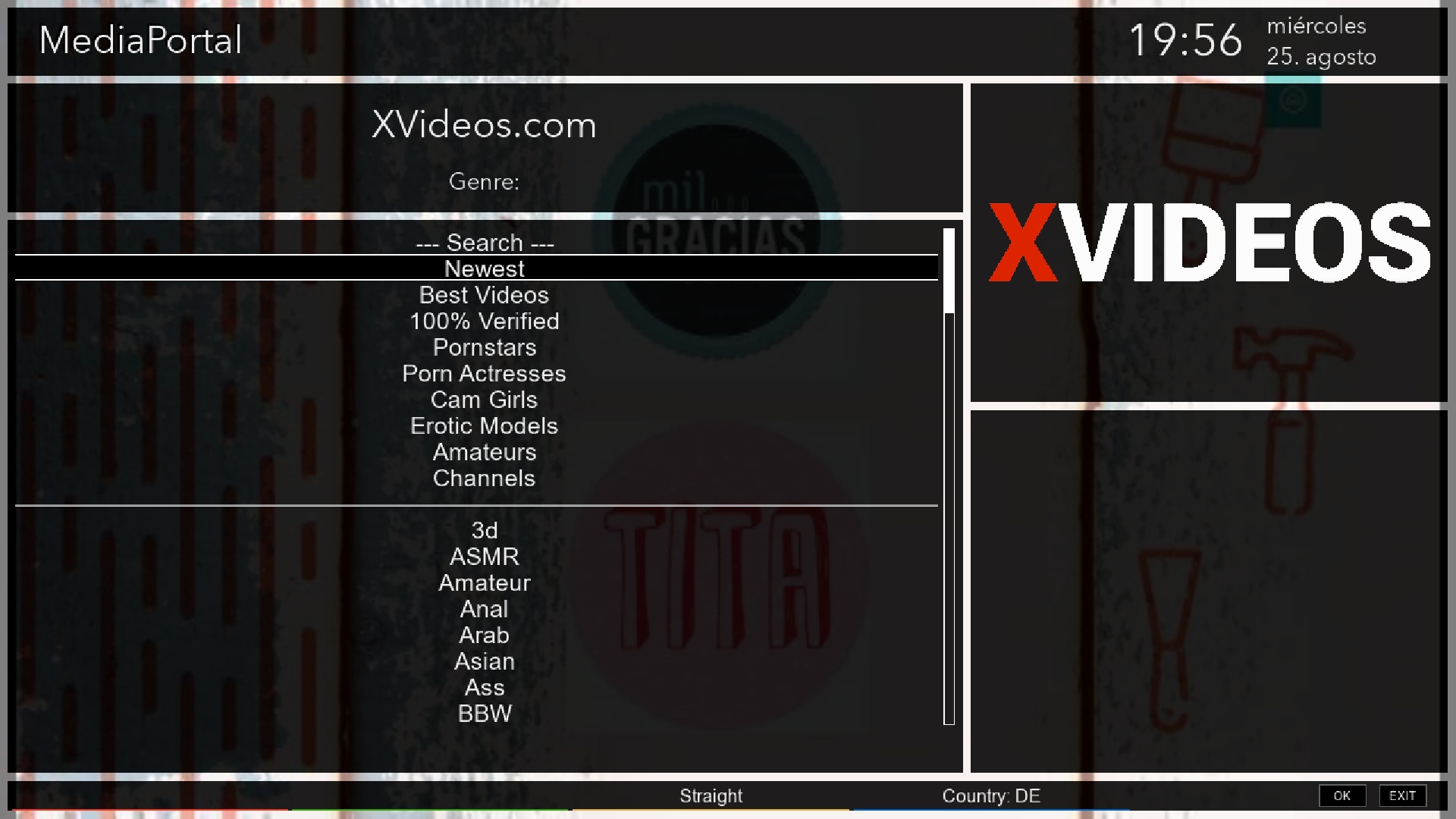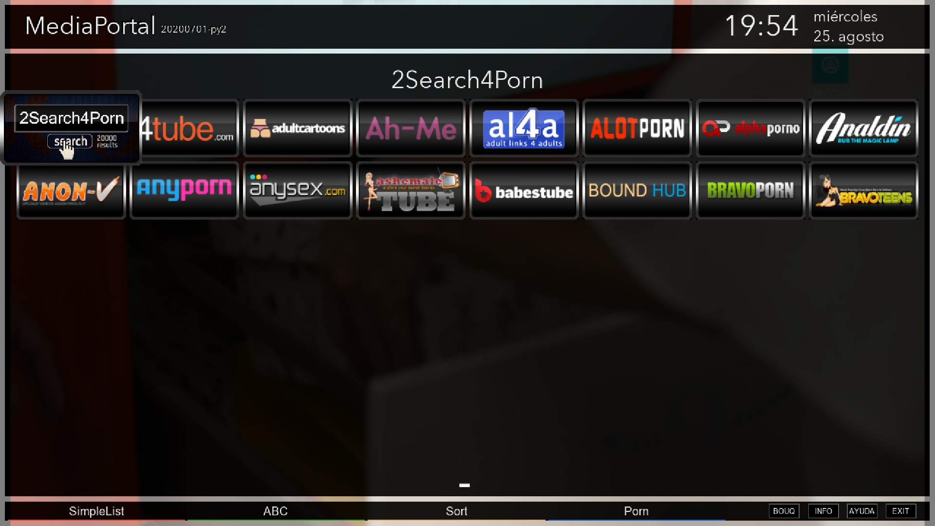 Una vez introducido nos apareceran los accesos a distintas plataformas de adultos, pondemos añadir mas pulsando en menu