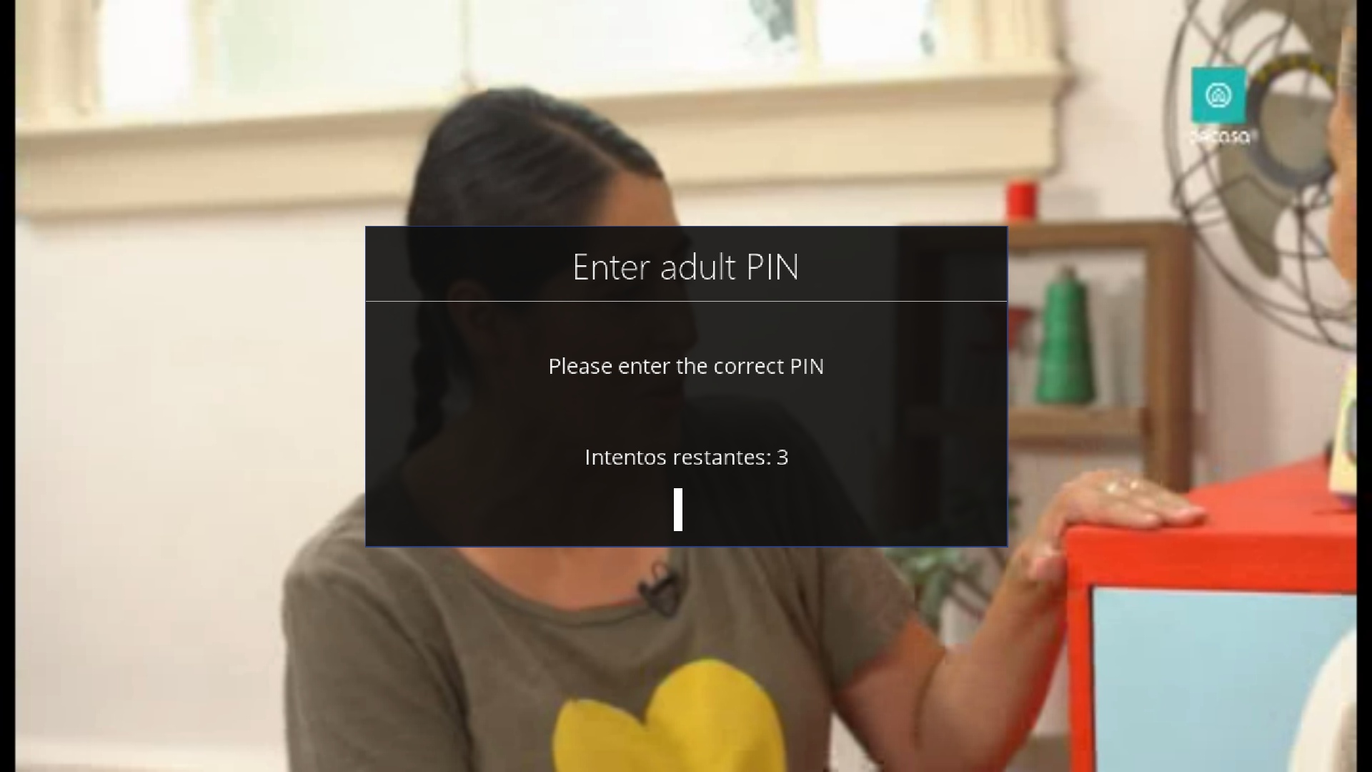 Nos salimos del menu de configuracion y en el menu principal pulsamos boton Help del mando a distancia nos saldra para introducir el pin de adultos
