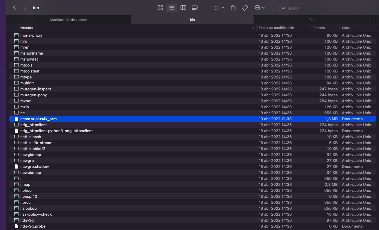 Una vez seleccionado el binario correspondiente a la cpu de nuestro receptor deberemos introducirlo en el directorio de nuestro receptor /usr/bin en este ejemplo para receptor arm: