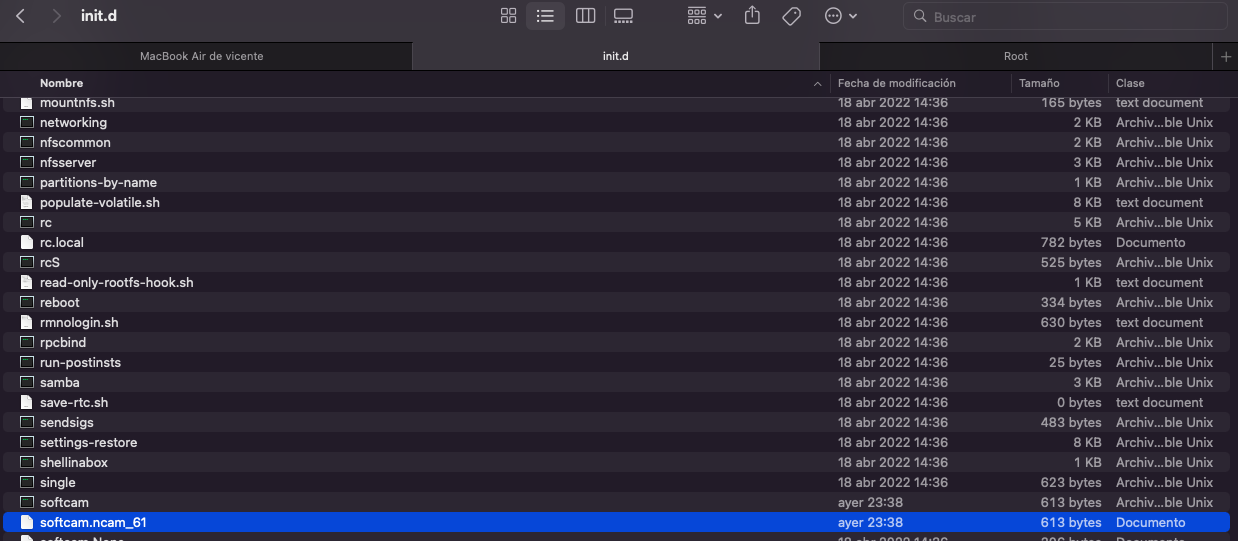 Una vez ya hemos creado nuestro archivo daemon, lo introducimos como comentemos en /etc/init.d con el nombre softcam.xxx, en este ejemplo: softcam.ncam_61