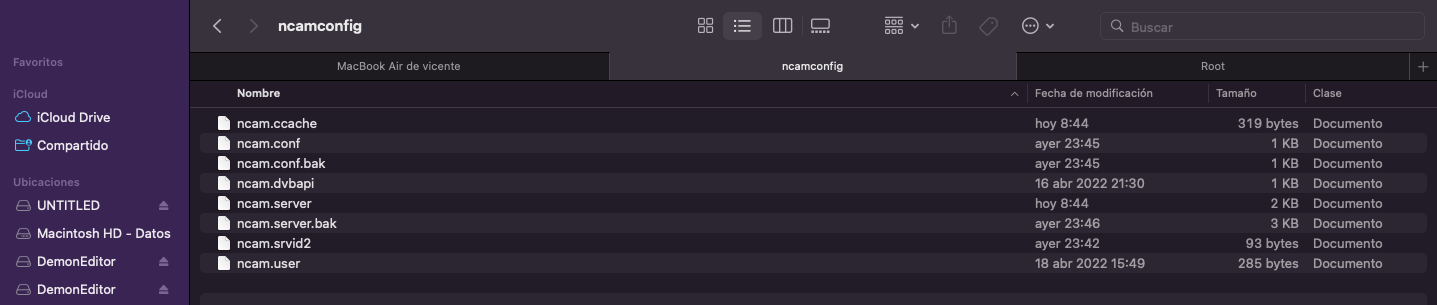 Una vez como hemos visto, hemos introducido el binario de ncam y creado su daemon de arranque, ahora ya nos falta solamente introducir sus archivos de configuracion, que deberan ir introducidos en la direccion del receptor que nosotros pusimos la que quisimos en el daemon de arranque, en este ejemplo pusimos como vimos anteriormente en la creacion del daemon: