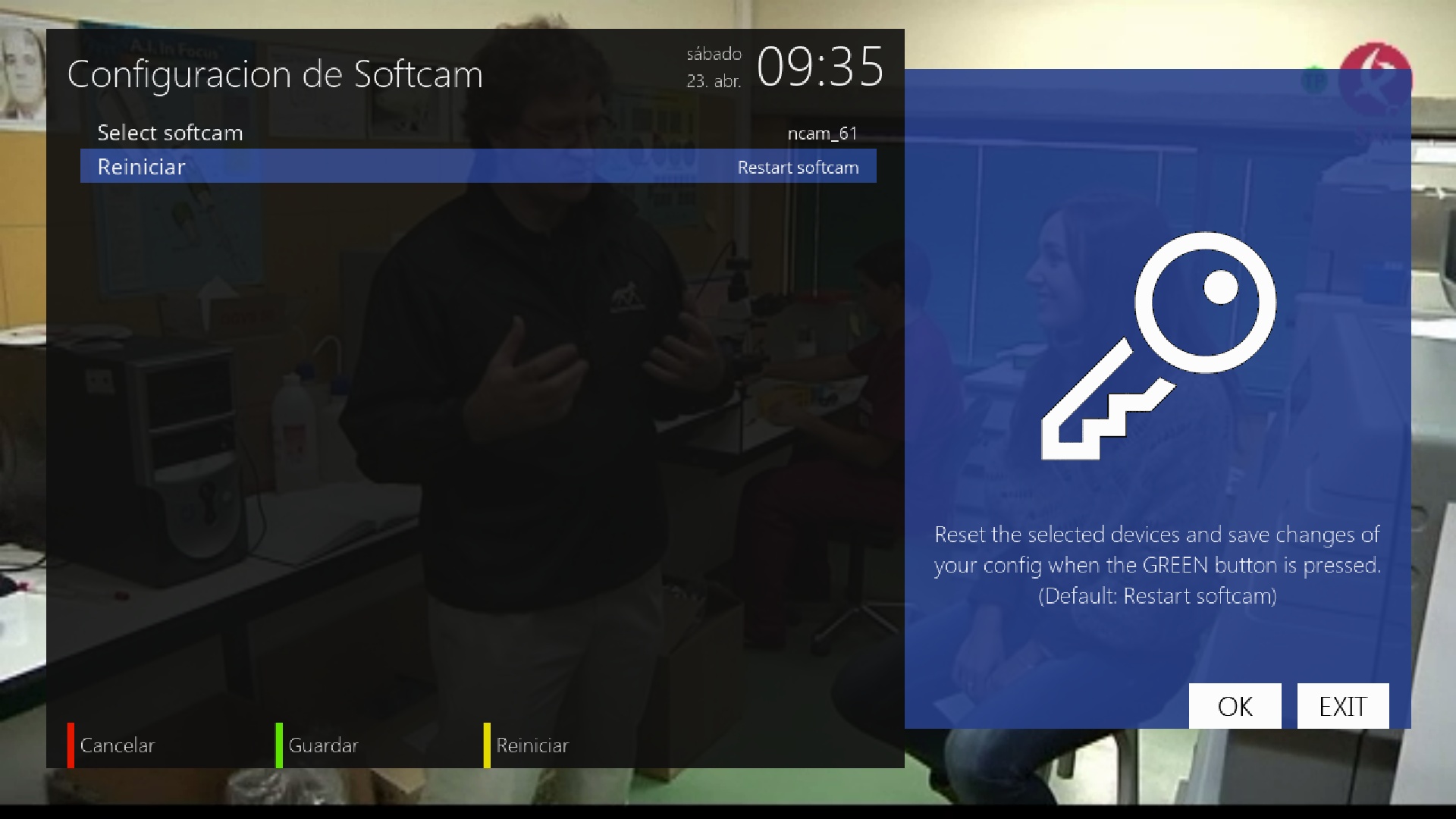 Una vez que lo tenemos todo preparado ya solamente nos queda su activacion, para ello pulsamos sobre menu + boton azul + softcam