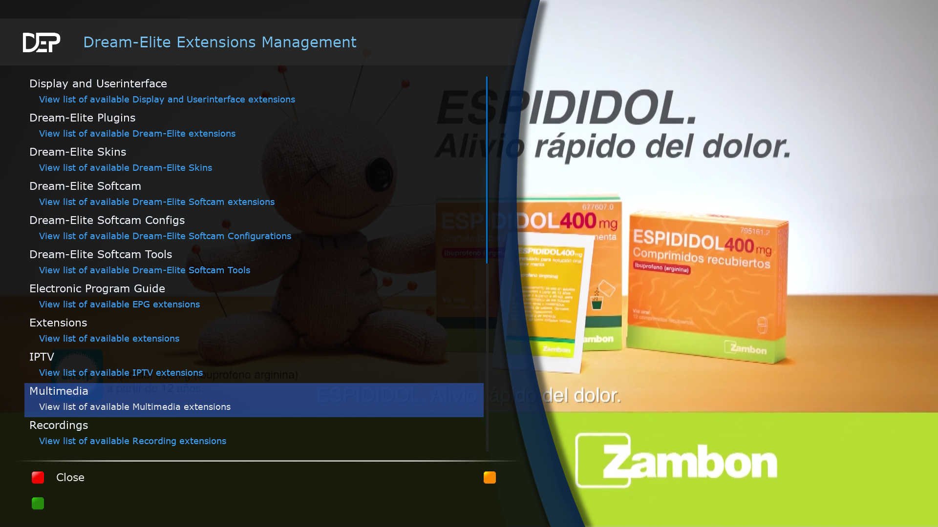 Para realizar la instalacion pulsamos en menu + Dreambox-Elite Panel y seleccionamos Dream-Elite Managament