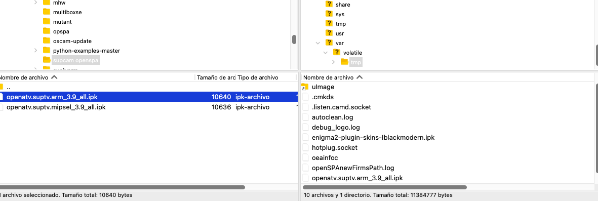Ahora descomprimimos el zip e introducimos el archivo .ipk en el directorio /tmp de nuestro receptor